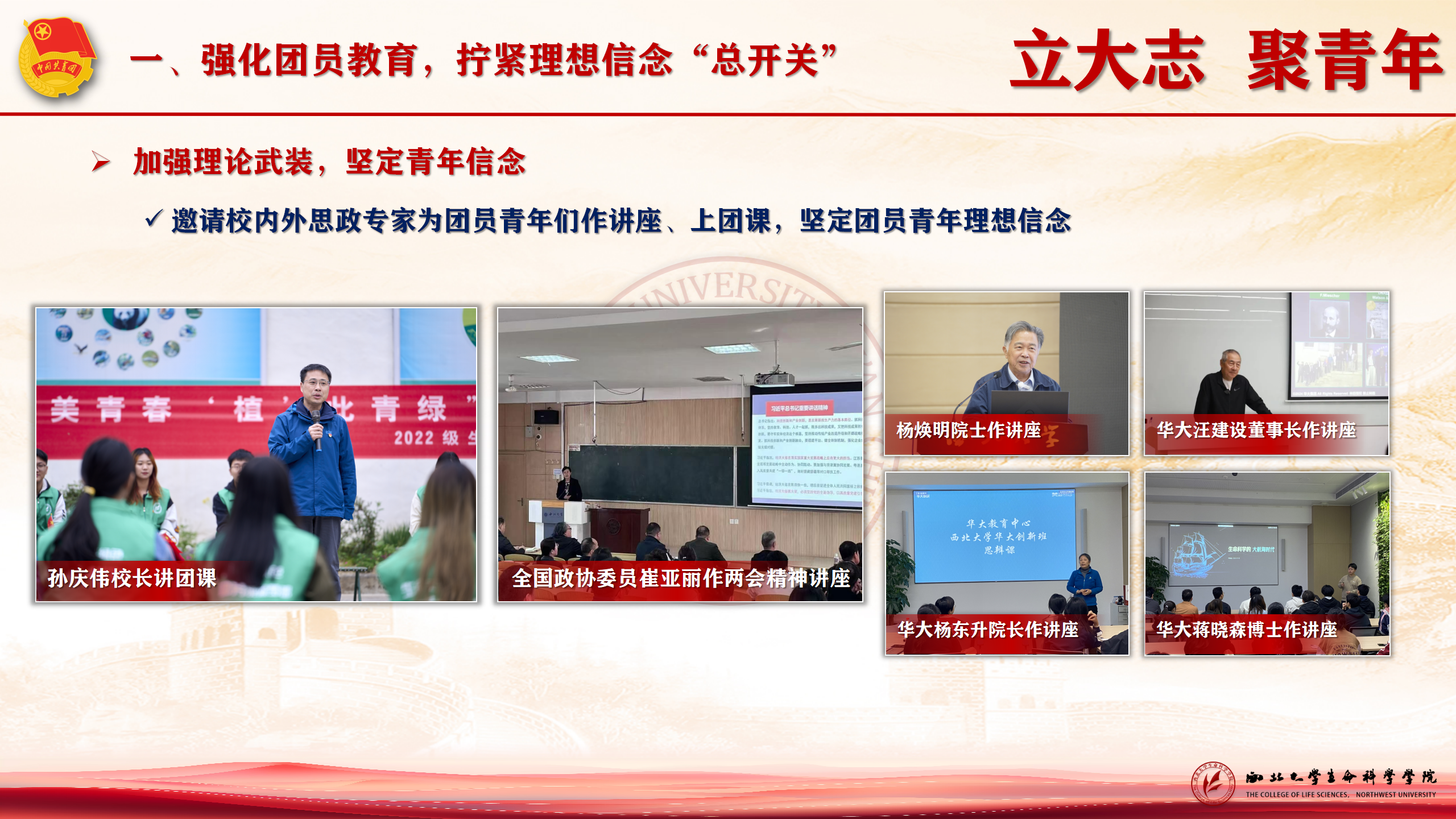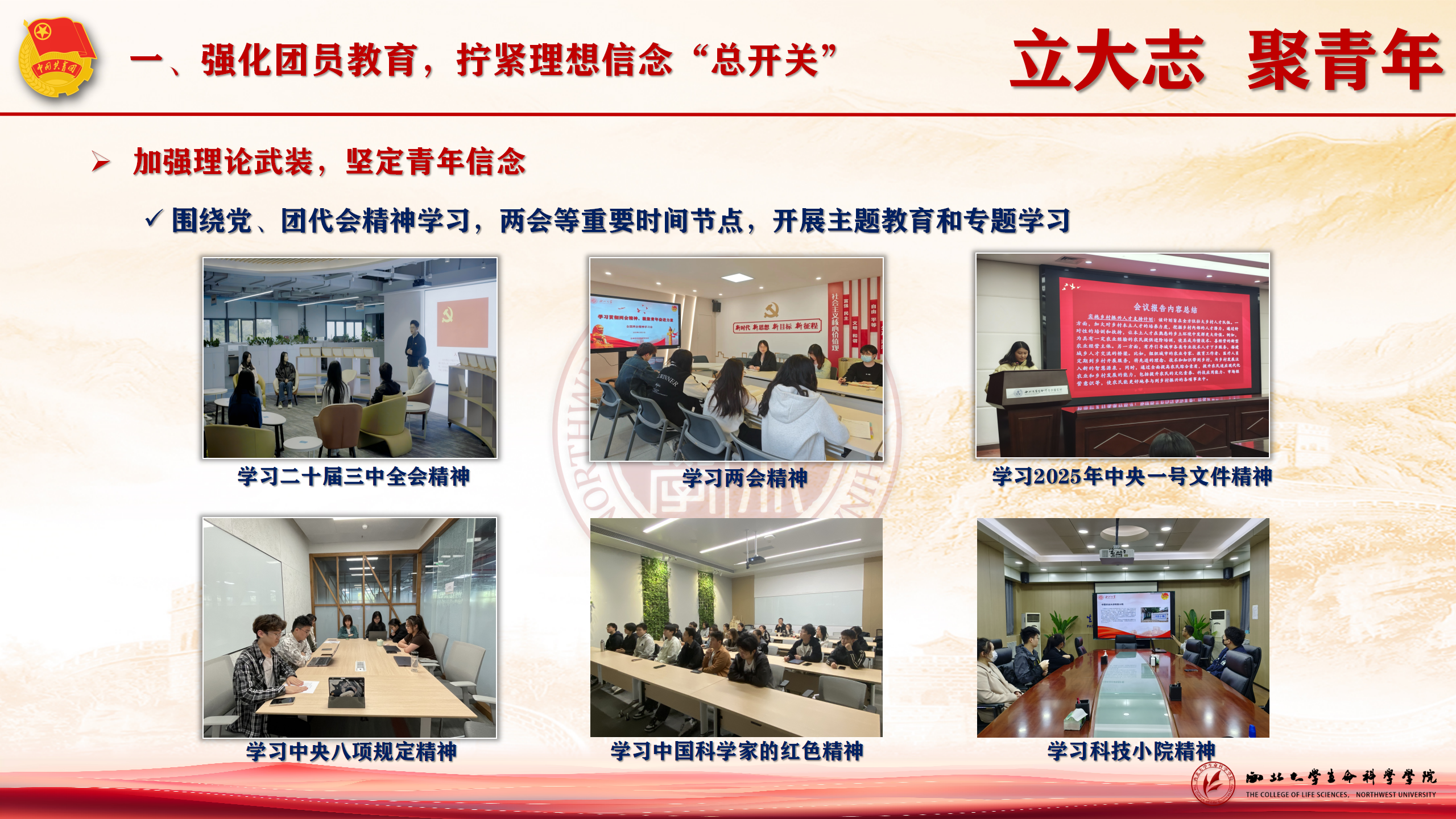 加强理论武装,坚定青年信念。过去的一年,学院团委始终坚持党建带团建,围绕党、团代会精神学习,两会等重要时间节点,开展30余场主题教育和专题学习活动。邀请校内外思政专家为团员青年们作报告、上团课,推动理论学习走深走实。
