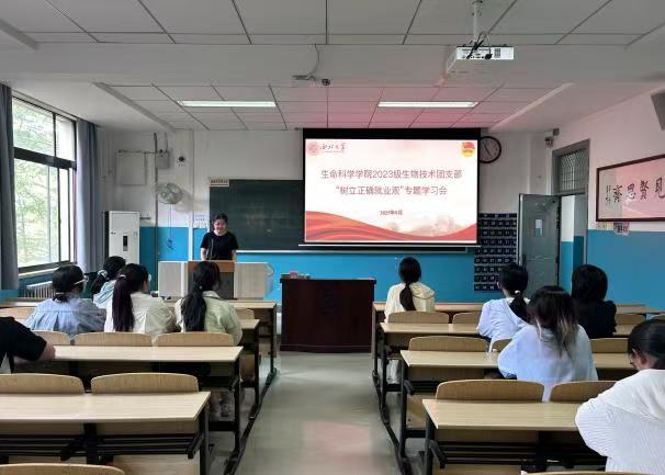 本科23级各团支部通过生动的案例,如麦麦提伊敏·赛麦尔返乡创业带领乡亲致富的故事,以及中国首位90后女航天工程师王浩泽的励志事迹,同学们深刻认识到个人职业选择与国家发展需求的紧密联系。随后,生科青年们共同观看了大学生就业指导视频,并展开热烈讨论。