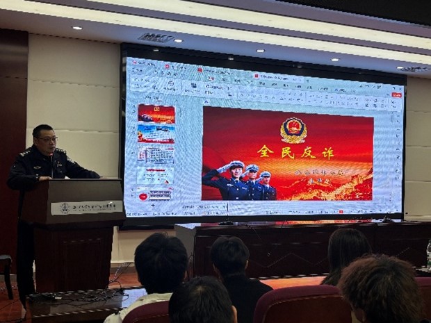为提升新生安全防范意识,10月17日上午,学院邀请西安市公安局碑林分局太白路派出所高勇警官、校保卫处王毅老师开展安全教育讲座。高警官结合大量真实案例,深入剖析了刷单返利、冒充客服、虚假购物等在校内容易高发的诈骗手法,并郑重警示同学们,诈骗脚本始终在与时俱进、不断翻新,大家必须时刻保持警惕,切实提高“反诈免疫力”。王老师则用“笔记本20秒失踪”“实验室设备瞬间被顺走”等真实案例,示范“随手锁门、物品入柜、警惕尾随”的防盗标准动作,提醒学生把安全意识种进日常细节。