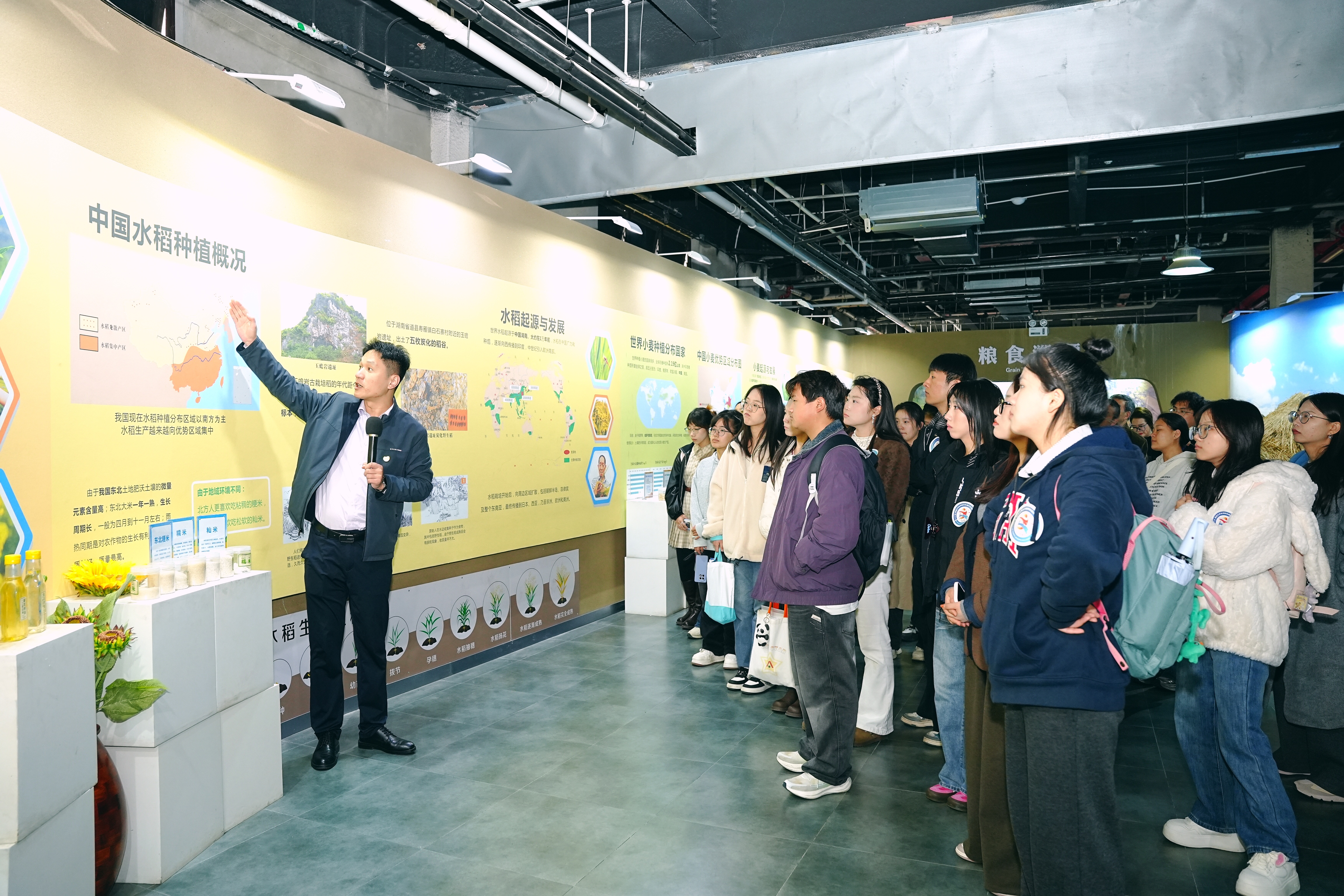 参访团队首先抵达爱菊集团,在集团科普馆讲解员的带领下有序进入馆内。讲解员通过实物陈列、多媒体互动、场景复原等多种形式,系统展示了中国粮食种植史、加工工艺演变、粮油文化传承等内容。随后爱菊集团核心骨干作为主讲嘉宾,围绕粮油行业技术发展趋势、绿色食品产业未来方向、企业创新研发成果等主题展开分享。在产业直通车与求职面对面环节,企业技术骨干与人力资源负责人围绕行业发展趋势、招聘需求及用人标准与学生互动交流,为学生求职困惑进行答疑。