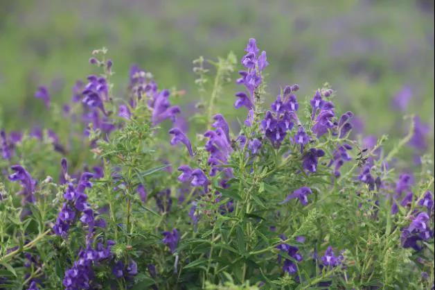 首先,同学们来到了黄芩的种植基地。站在路边,极目望去,灰白的云层之下是旷远的田野。此时正是黄芩开花的季节,盛开的花簇在风中翻起了一层层紫色的“浪花”,同学们迎风而立,发丝飞舞,仿佛置身于浪漫电影的拍摄画面之中。和胜军总经理给同学们介绍了黄芩的生长情况,黄芩是三年才能采摘一次的药材,由于当前气候比较干燥,正适合黄芩种植,该地区生长出来的黄芩更有清热解毒、安神养颜的药效。也正因如此,澄城县被称为“黄芩之乡”。