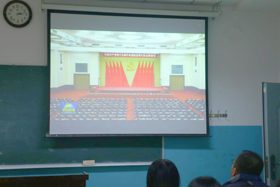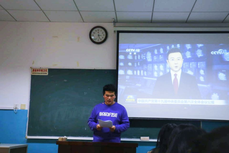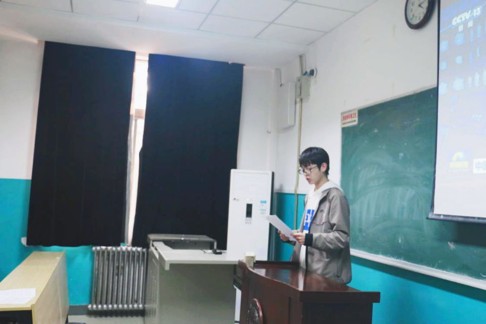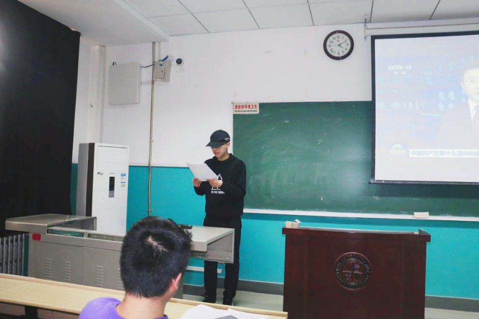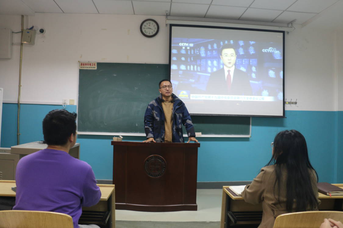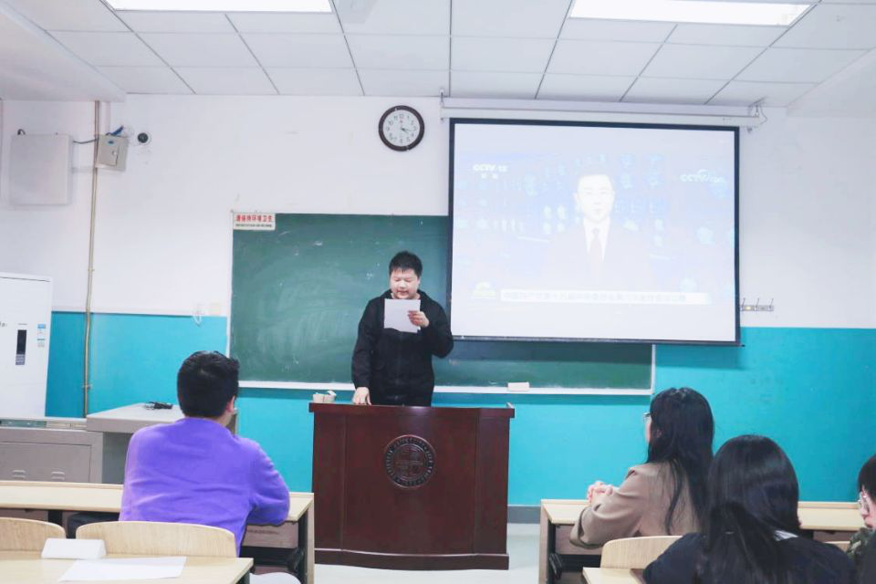 活动伊始,团支部书记屈皓东为在座师生播放十九届六中全会新闻,并领学会议公报,号召青年学生以建党精神为笔,绘制坚守信仰、奋斗不息、努力拼搏、为国奉献的青春画像。