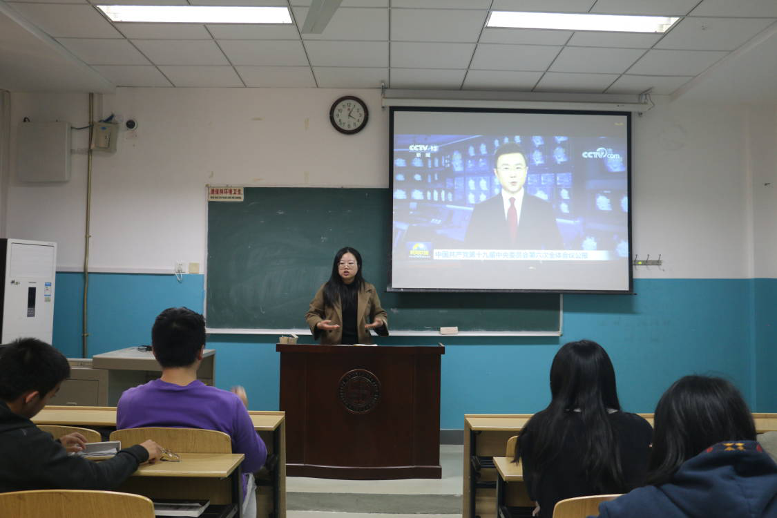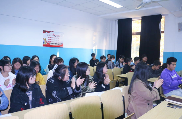 三位同学发言后,课堂上响起了雷鸣般的掌声。他们说出的不仅是他们的内心体悟,更是每一个青年学生的感悟。“萤烛末光增辉日月,尘雾之微补益山海”,百年征程,恢宏史诗催人奋进,作为新一代青年,要把青春奋斗融入党和人民事业,让自己成为实现中华民族伟大复兴的先锋力量。这是中国当代大学生的共鸣,未来属于青年,希望寄予青年。