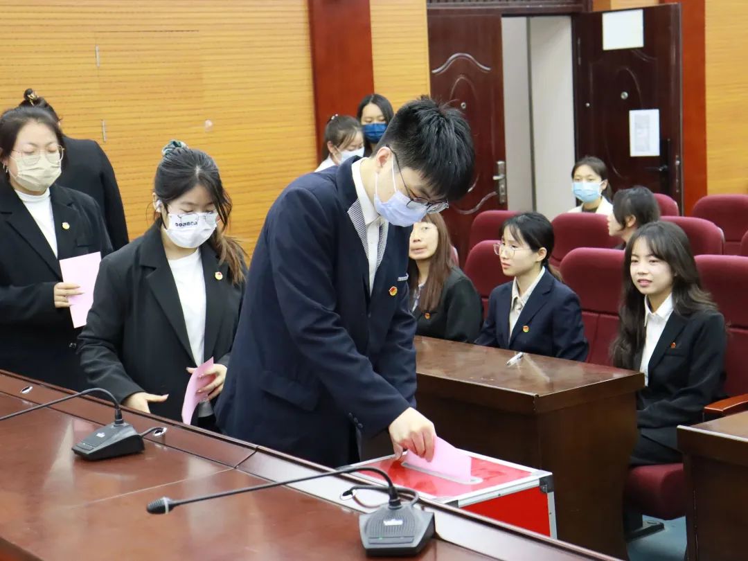 根据大会选举办法,由总监票人刘梦凡组织投票环节。与会全体团员采用无记名投票方式选举产生了学院学生会团支部第一届委员会委员,王嘉璐、郭雅霜、时吉雨、王小涵、李妮娜5名同学当选。