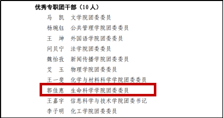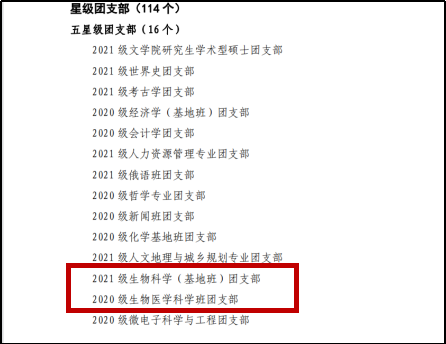 一年来,学部共青团组织踔厉奋发、笃行不怠,在今年学校共青团工作“五四”评比中获得多项荣誉:yl9193永利集团团委荣获“五四红旗团委”荣誉称号,医学院团委荣获“志愿服务工作先进单位”称号,2021 级生物科学(基地班)团支部与2020级生物医学科学班团支部荣获“五星级团支部”称号,2020级生命科学与技术(基地班)团支部与2021级生物医学科学班团支部荣获“四星级团支部”称号,2021级生命科学与技术(基地班)专业本科团支部、2021级临床医学班团支部与2020级临床医学班团支部荣获“三星级团支部”称号,郭佳惠荣获“优秀专职团干”称号,邓紫月荣获“十佳团支部书记”称号,长孙梓音荣获“优秀学生团干部”称号,马庆缘、周婧等29名团员青年荣获“优秀共青团员”荣誉称号。