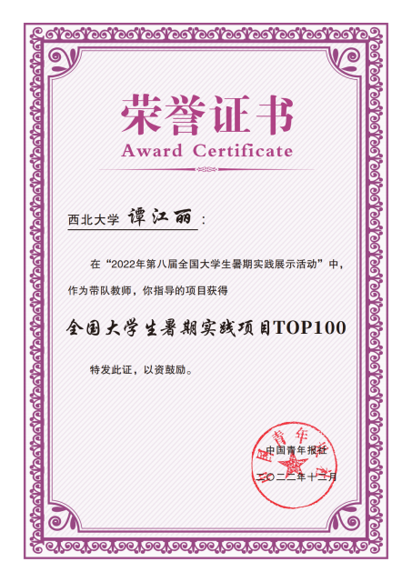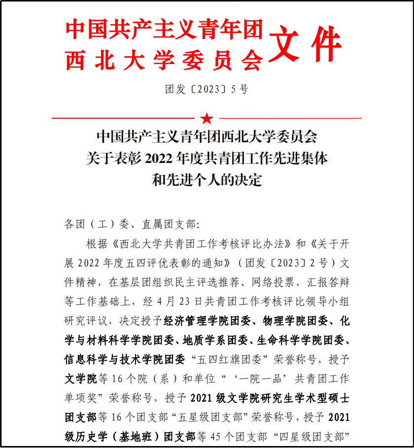 过去的一年里,学部认真贯彻落实党的二十大精神中对青年培养的目标要求,始终秉承和发扬永利集团“公诚勤朴”校训精神,坚持立德树人根本任务,聚焦构建“三全育人”工作体系,涌现出一批青年教师、青年集体的模范代表。“助力乡村振兴,胡蜂防治宣传”项目入选“2022年全国大学生暑期实践项目TOP100”。在近期碑林区、长安区青年评选中,“胡蜂防治”科研团队谭江丽、范铭沁等荣获“碑林青年五四奖章集体”、青年教师刘琼荣获“碑林青年五四奖章个人”、青年教师谭增琦荣获“长安好青年”称号。