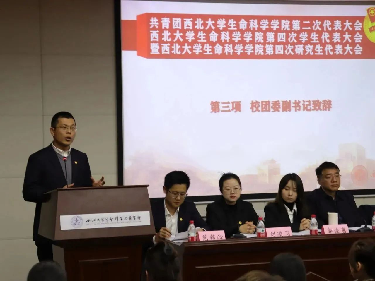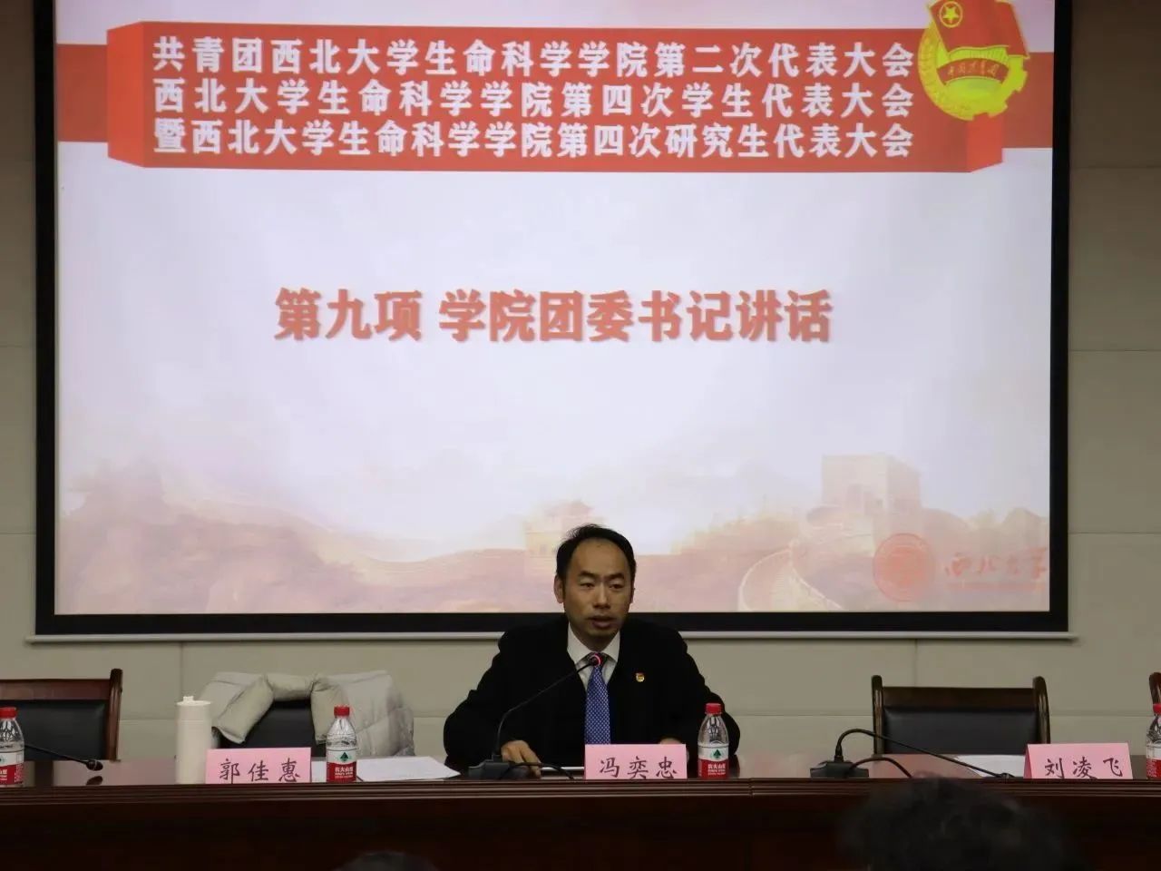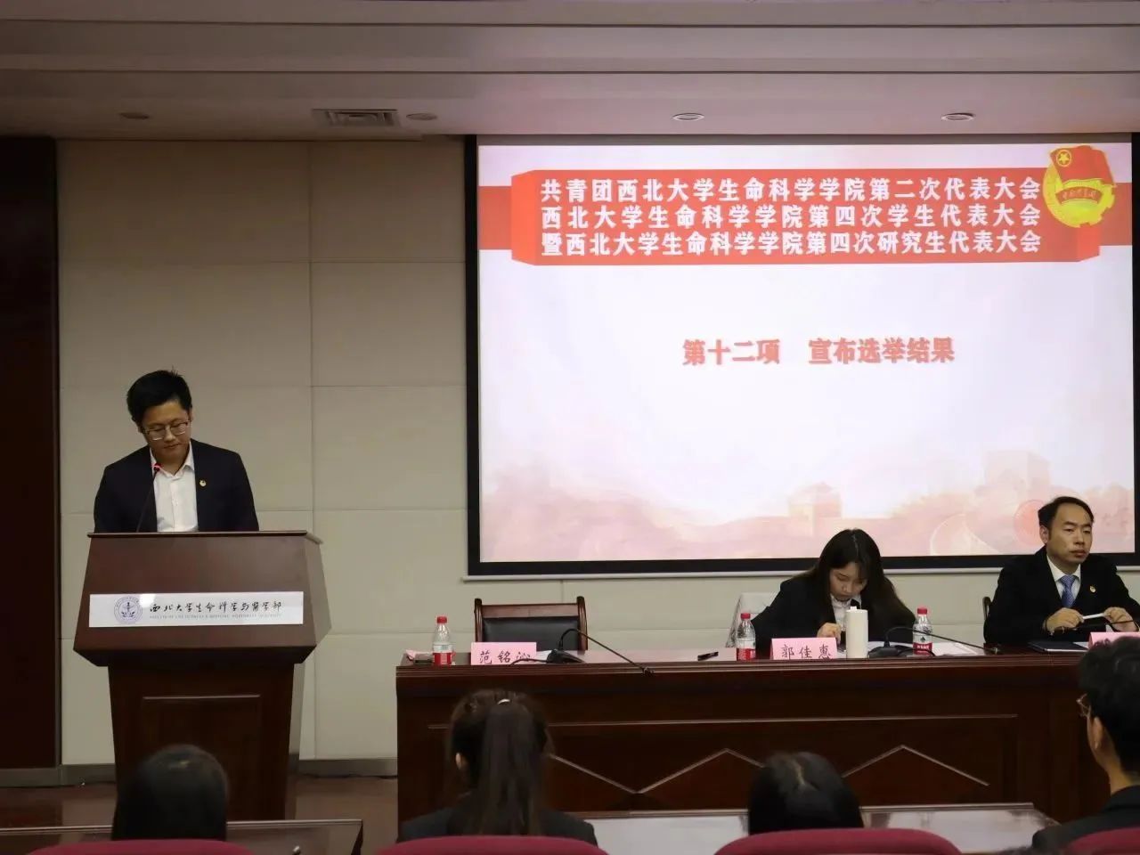 最后,学院党委副书记魏宁向大会的召开表示热烈祝贺。他强调,本次大会的召开,是标志我院团学研工作步入规范化、常态化的一次重要会议,是积极顺应学校和学院综合改革不断深化需要的一次主动作为会议,更是广大青年们共商做好党的助手和后备军,进一步规范和加强自我教育、自我管理、自我服务和自我监督工作的会议。魏宁副书记对大会客观、详实的工作报告表示了肯定,感受到了青年人对工作的积极探索与一腔热情。同时,他提出了三点希望:一是加强理论学习,坚定理想信念。希望新一届团委、学生会、研究生会始终牢记自己的政治使命,把教育青年和引领广大学生牢固树立理想信念,坚定跟党走的信心作为首要任务。二是加强基层建设,凝聚青年力量。希望院团委、学生会、研究生会要健全体系、完善机制、创造环境、锻炼队伍,把各项工作融入到每一个学生的成长进步之中。三是创新工作方法,增强生机活力。希望新一届的院团委、学生会、研究生会主席团要认真履行引领凝聚青年、组织动员青年、联系服务青年的职责,团结带领学院广大青年在学院人才培养工作中不断贡献青春力量!作为生科学子,生逢其时,重任在肩。各位同学要脚踏实地、艰苦奋斗、积极探索、大胆创新,将小我融入大我,竭力推动学院改革发展事业,为学校“十四五”规划和“双一流”建设各项目标的顺利实现贡献力量!