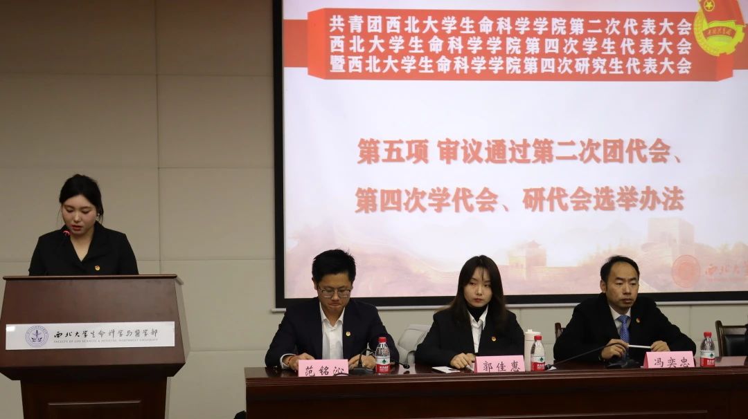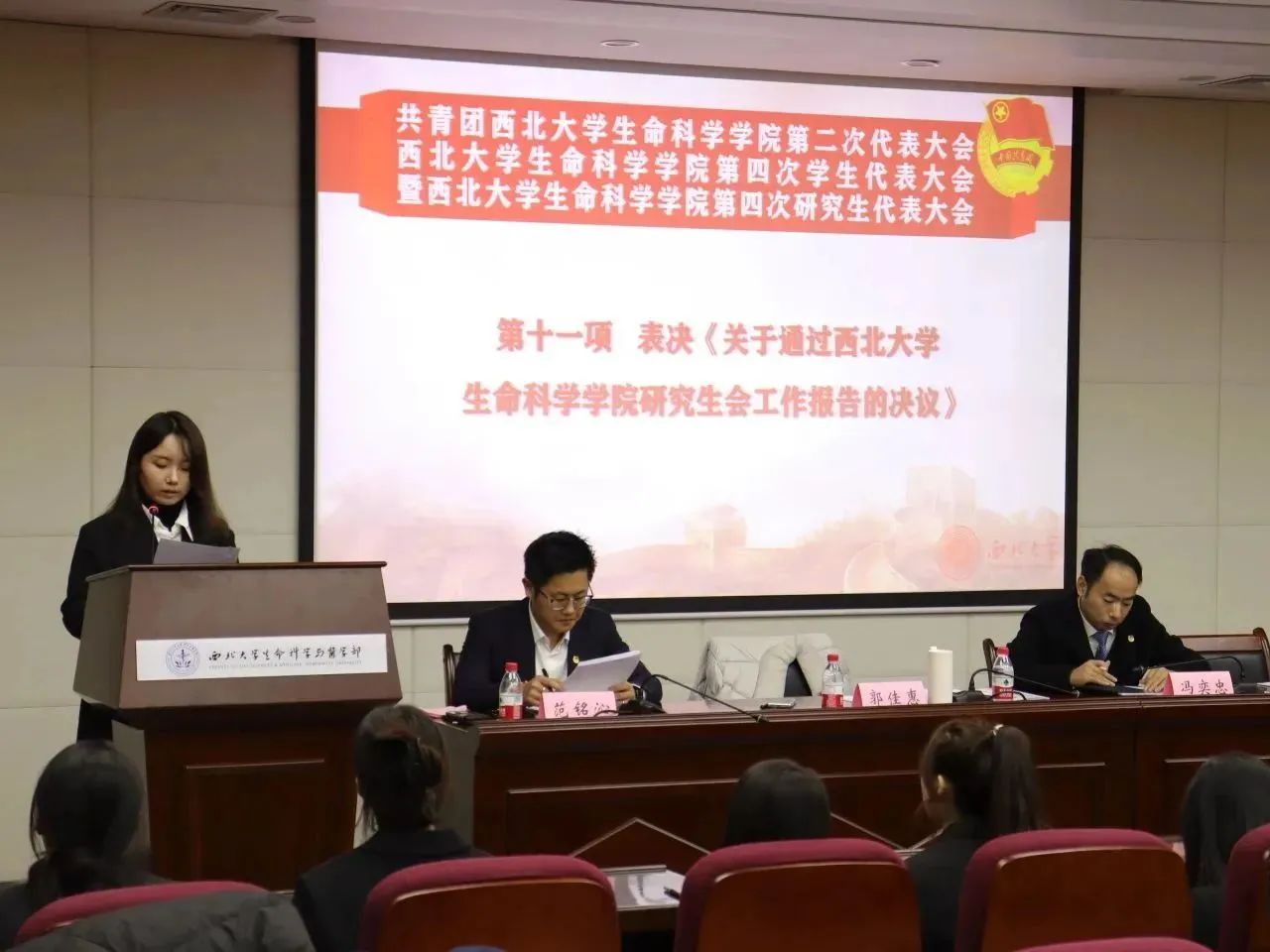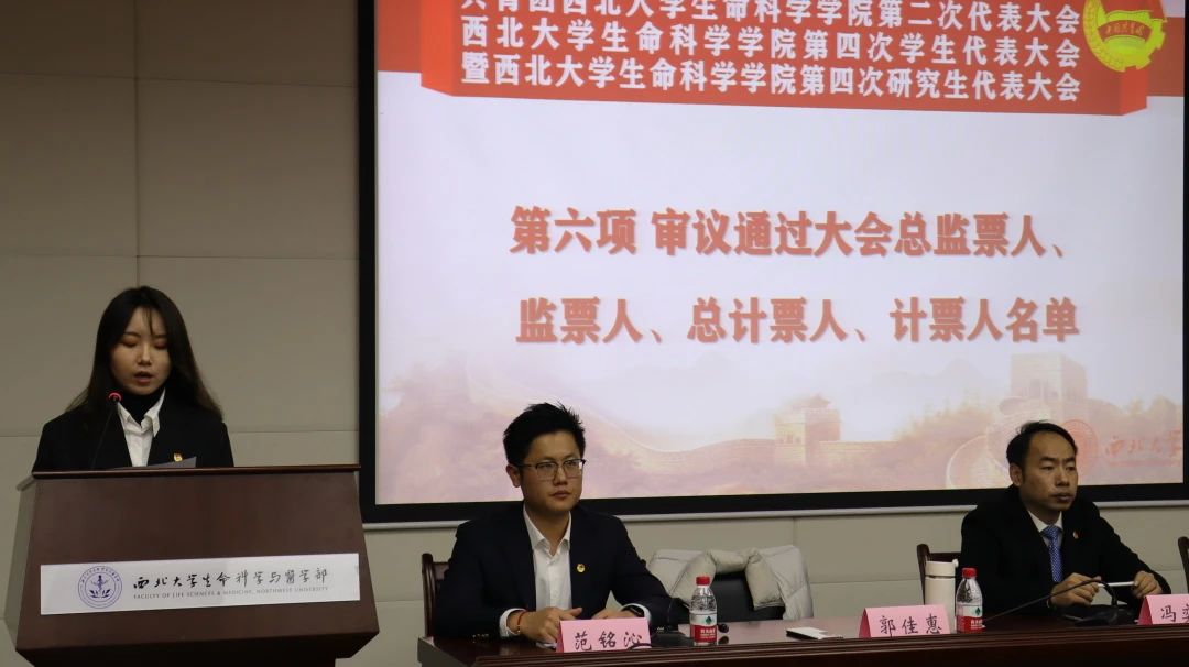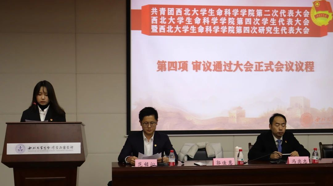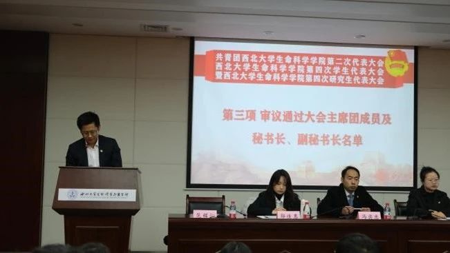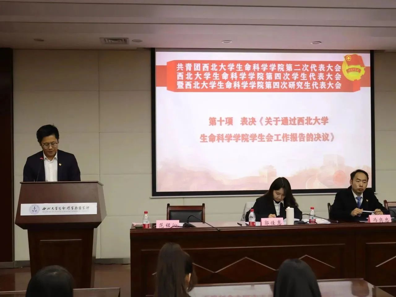 最后,学院党委副书记魏宁向大会的召开表示热烈祝贺。他强调,本次大会的召开,是标志我院团学研工作步入规范化、常态化的一次重要会议,是积极顺应学校和学院综合改革不断深化需要的一次主动作为会议,更是广大青年们共商做好党的助手和后备军,进一步规范和加强自我教育、自我管理、自我服务和自我监督工作的会议。魏宁副书记对大会客观、详实的工作报告表示了肯定,感受到了青年人对工作的积极探索与一腔热情。同时,他提出了三点希望:一是加强理论学习,坚定理想信念。希望新一届团委、学生会、研究生会始终牢记自己的政治使命,把教育青年和引领广大学生牢固树立理想信念,坚定跟党走的信心作为首要任务。二是加强基层建设,凝聚青年力量。希望院团委、学生会、研究生会要健全体系、完善机制、创造环境、锻炼队伍,把各项工作融入到每一个学生的成长进步之中。三是创新工作方法,增强生机活力。希望新一届的院团委、学生会、研究生会主席团要认真履行引领凝聚青年、组织动员青年、联系服务青年的职责,团结带领学院广大青年在学院人才培养工作中不断贡献青春力量!作为生科学子,生逢其时,重任在肩。各位同学要脚踏实地、艰苦奋斗、积极探索、大胆创新,将小我融入大我,竭力推动学院改革发展事业,为学校“十四五”规划和“双一流”建设各项目标的顺利实现贡献力量!