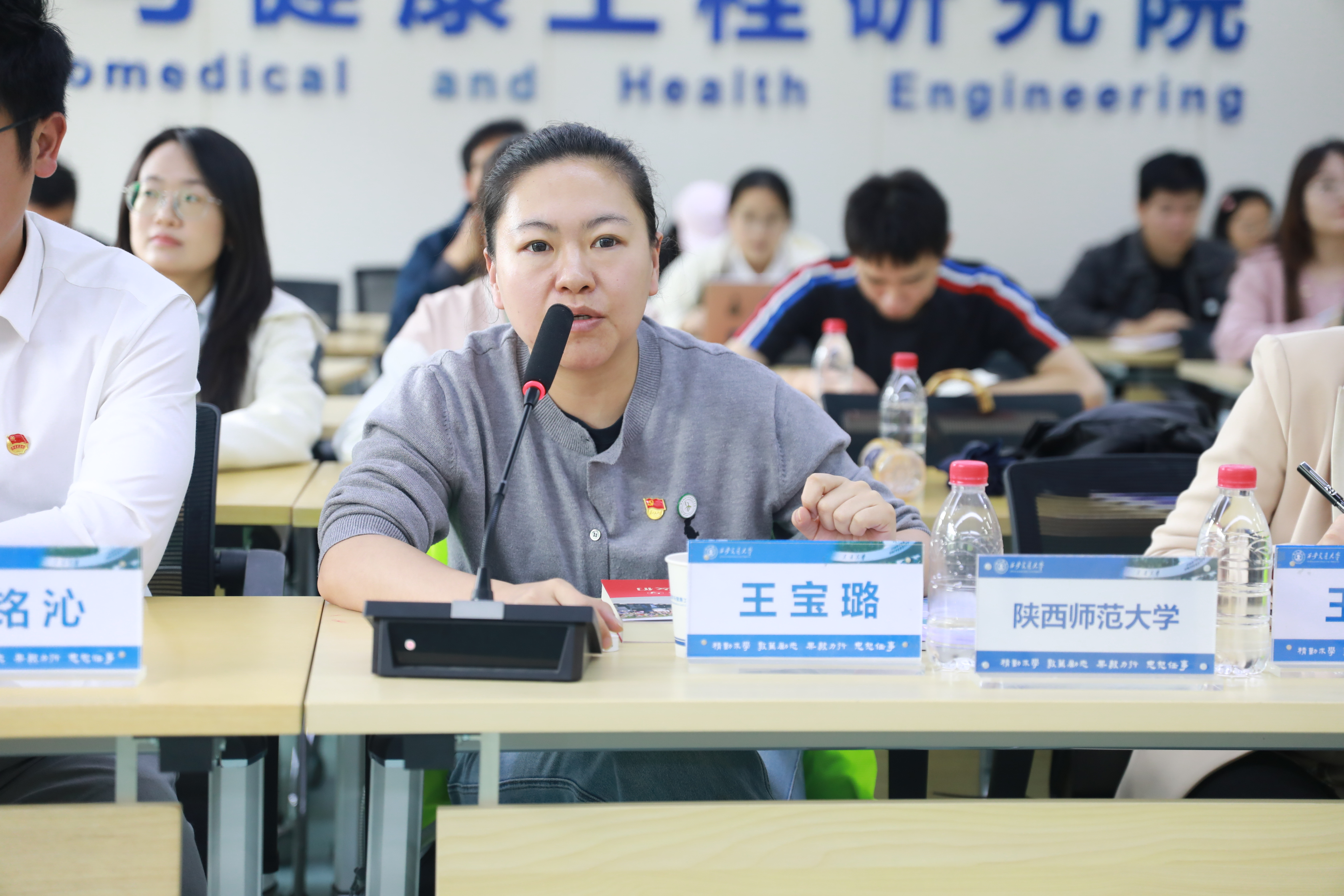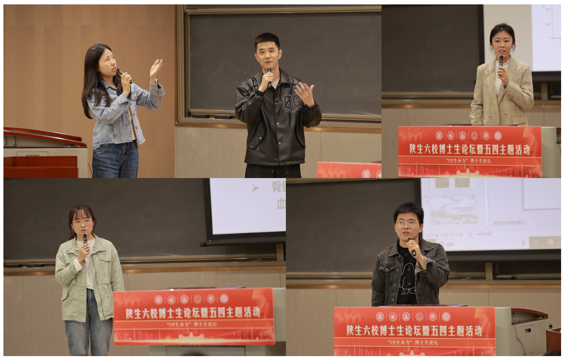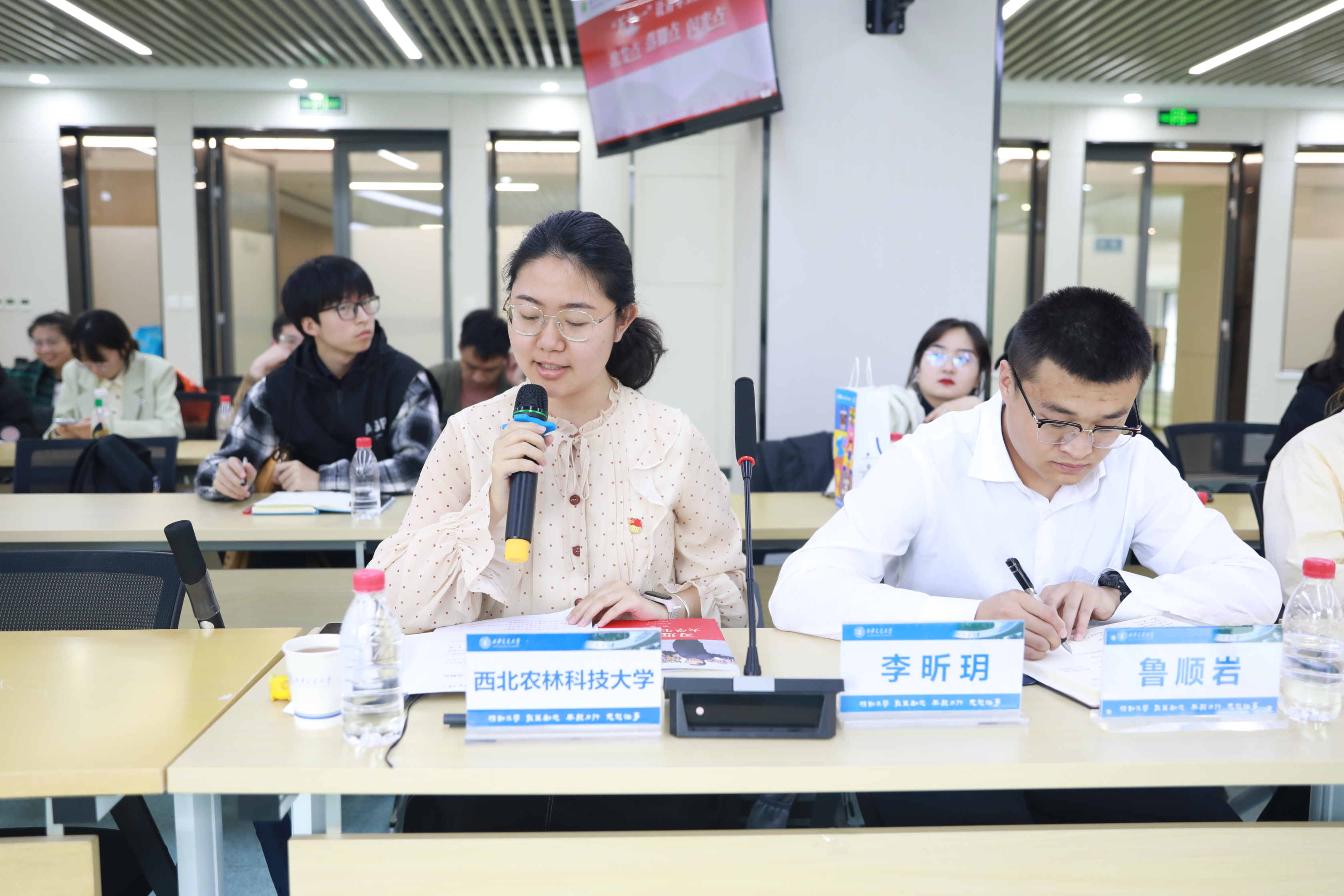 各校优秀博士生代表依次做专题分享。西安交通大学博士生吴方南在主题为《荧光金纳米簇探针的制备及其在苯酚基生化分子检测中的应用》的分享中,提出了老年疾病诊断的新思路与新方法。西北工业大学博士生闫金笑做题为《高脂饮食诱导的肥胖对造血干细胞增殖分化的影响及其分子机制研究》的分享,详细介绍了为治疗肥胖症和造血系统相关疾病提供的新通路和新靶点。西北农林科技大学博士生彭子恒以《农业系统土壤微生物组的形成与维持机制》为题,分享对土壤微生物的研究,并探讨土壤微生物促进农业高效可持续发展的新思路。
