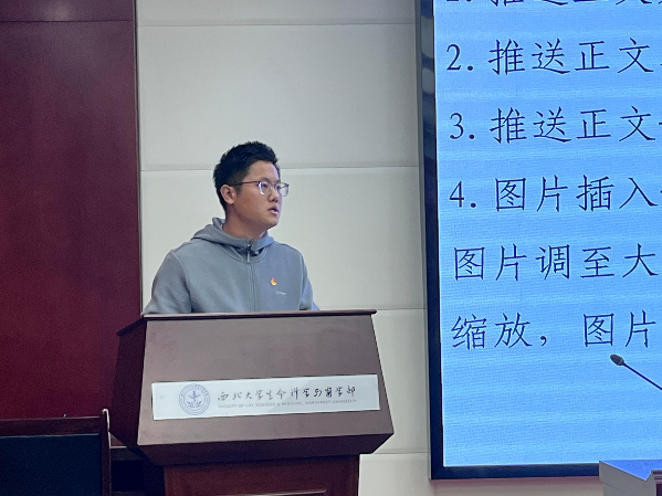 培训伊始,范老师详细讲解了推送文案撰写的各项规范。从字体选择到排版布局,从图片格式到文稿类型,以达到提升推送文案质量的目的。同时,范老师结合典型实例,从结构和文字两个维度,进一步阐述了如何避免晦涩冗长的语句、善用修辞等技巧,形成一篇完整、高质量的新闻稿。帮助团学干部们迅速把握文案撰写的核心要点。