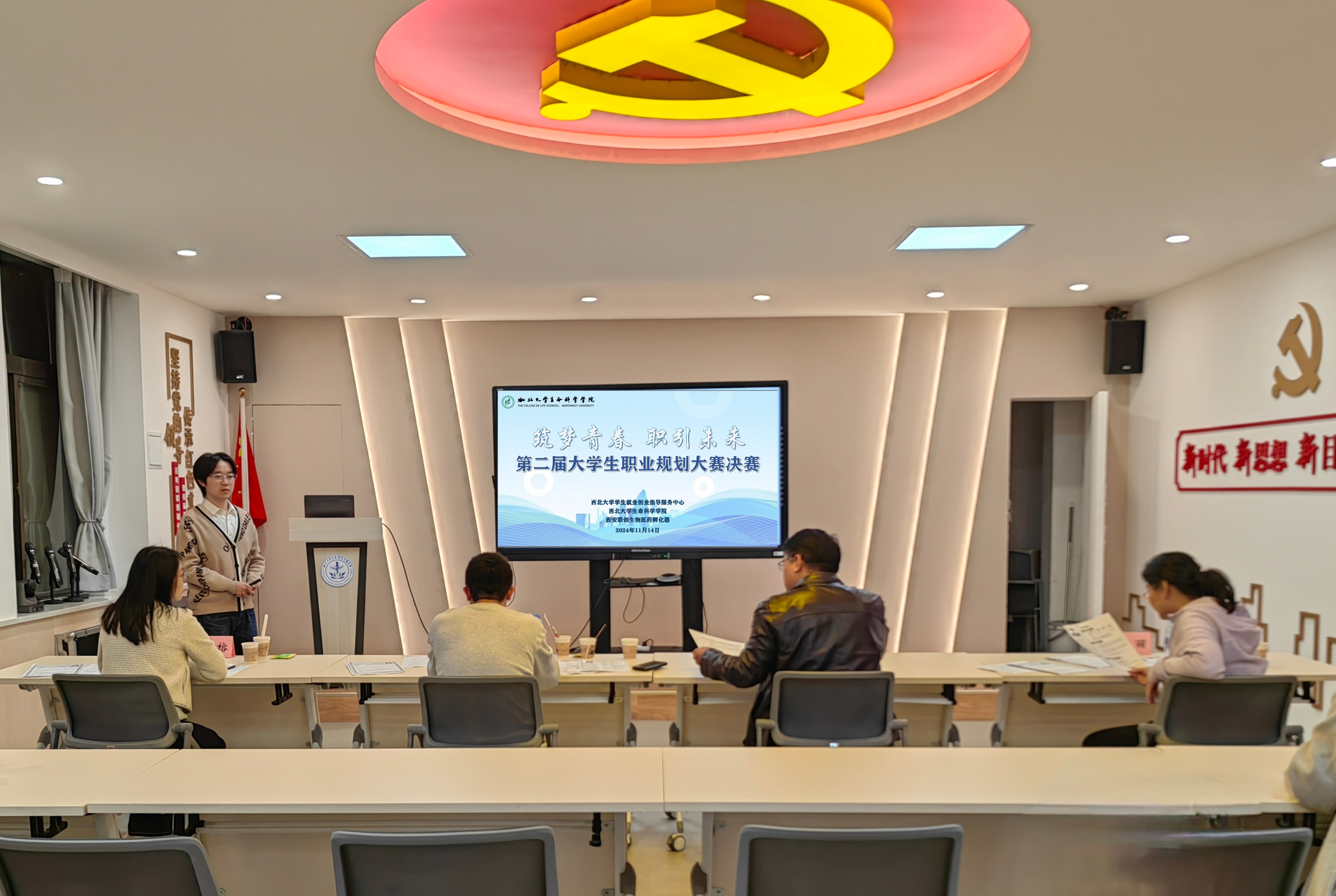 筑梦青春,职引未来。2024年11月14日晚,由“生启未来”职业生涯教育工作室牵头,学院第二届大学生职业规划大赛决赛于博望、博睿、博雅会议室同步举行。党委书记刘小光,党委副书记魏宁,校就创中心副主任米鑫、王伟,西安联创生物医药孵化器项目总监赵英,班主任、导师代表谭江丽、张卫国,“生启未来”职业生涯教育工作室成员老师们出席并担任评委。经个人报名、学院复赛,最终成长赛道23人、就业赛道15人,累计38名同学入围决赛,展开最终角逐。