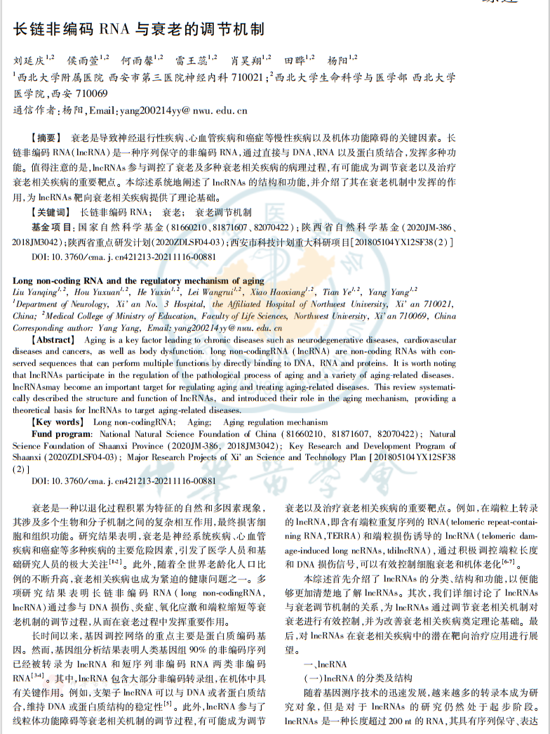 刘延庆最终凭借如此严谨的科研态度,发表了12篇SCI论文,其中在Ageing research reviews(IF:13.1,中科院1区TOP)发表SCI论文2篇,在中华实验外科杂志等核心期刊发表论文2篇。在这12篇SCI论文中,他以第一作者身份发表2篇,以共同一作身份发表2篇,以参与作者身份发表8篇。这样丰硕的研究成果离不开导师的殷切指导,也离不开刘延庆自己的汗水。