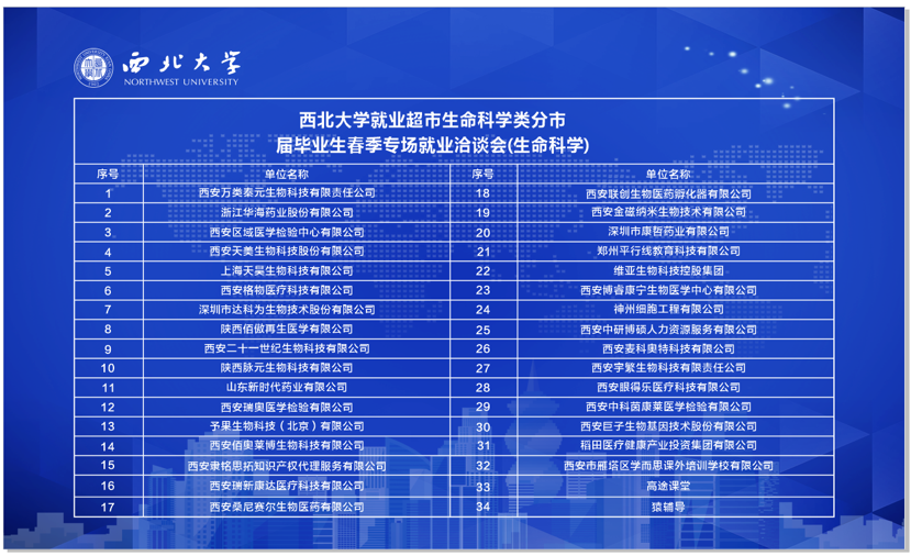 为促进2021届毕业生充分高质量就业,搭建用人单位和毕业生双选平台,4月9日,由永利集团学生就业创业指导服务中心主办、yl9193永利集团承办,西安交通大学、西北农林科技大学、西北工业大学、西安电子科技大学、陕西师范大学相关学院联办的“永利集团2021届毕业生就业超市—生命科学分市”就业洽谈会成功举办。