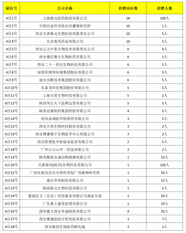 本场招聘共有28家优质用人单位参会,以陕西省内企业为主,共计提供岗位100余个,计划招聘900余人。
