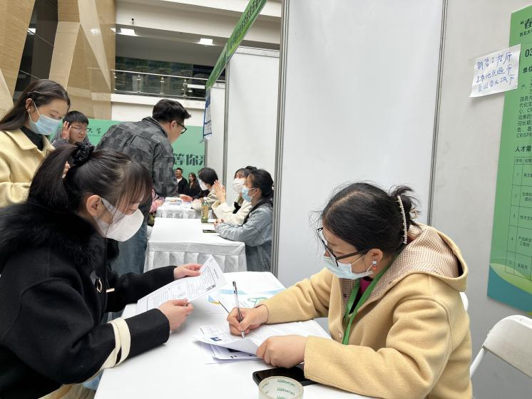 陈富林副校长及有关负责人与参会单位、求职学生亲切交流,详细了解企业简况和人才需求,询问学生求职情况,并向企业热情推荐优秀毕业生。张宇书记、付爱根院长、学生工作负责人魏宁、就业专干郭佳惠积极与上海皓元医药股份有限公司、西安万类秦元生物科技有限责任公司、深圳市朗坤环境集团股份有限公司、迪安诊断技术集团股份有限公司、西安博睿康宁生物医学中心有限公司、陕西梅里众诚动物保健有限公司、广西壮族自治区中国科学院广西植物研究所、陕西脉元生物科技有限公司、清华德人西安幸福制药有限公司9家公司现场洽谈,充分了解各企业基本情况、人才需求、招聘现状与下一步合作意向,针对人才输送、创新创业、校企合作等事宜进行了充分讨论。