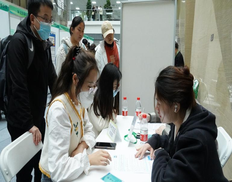 招聘会前,用人单位提前进入会场进行签到,按照工作人员指引到达展位有序开展招聘。招聘现场,毕业生根据用人单位名录及宣传海报,积极锁定意向岗位,与用人单位进行了友好深入交流,部分毕业生现场确定签约意向,主动加入用人单位招聘群,为后续面试与签约事项奠定了良好基础。