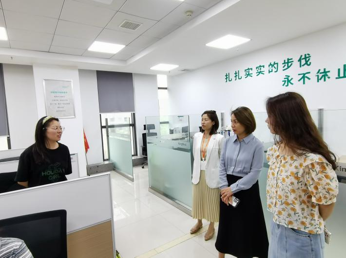 在西安金域医学检验所有限公司,有关负责人首先带大家走进公司员工工作区、餐饮区、健身区、休闲区等,亲切分享公司的企业文化、发展历程、企业荣誉,随后逐一参观公司生化发光、免疫、基因、质谱、病理等各大实验技术平台,详细介绍公司医检体系、肿瘤检测体系等运营模式、业务范围、运作优势。张亚妮副院长、郭佳惠老师亲切慰问了已就职于金域医学的毕业生代表。交流环节,双方回顾了扎根多年的合作情谊,对进一步加深产学研合作、推动成果孵化和科技创新表示期待。郭佳惠老师分享了2023届毕业生的当前就业情况,询问了公司的职位需求,张亚妮副院长表示,金域医学作为粤港澳大湾区的代表企业,长期聚焦医检主业,引领国内临床医学检验和病理诊断行业发展,希望能继续依托金域的技术平台和医检人才培养优势,进一步围绕人才培养、人才供需对接、科研项目攻关、产学研融合等产出更多合作成果。最后,参访毕业生在公司人事的安排下,现场投递简历并面试,基本确定了双选意向。
