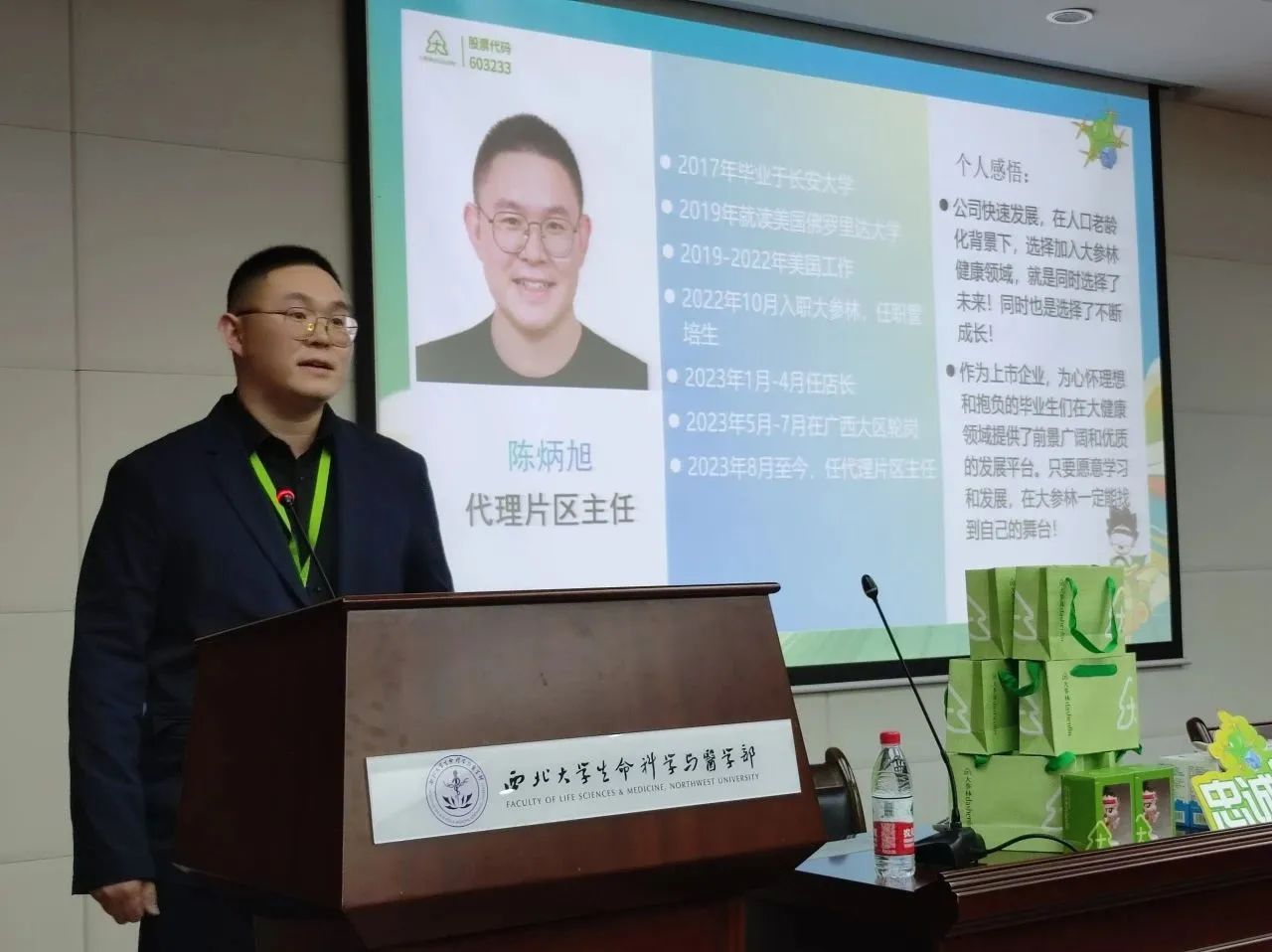 随后,袁萍总监详细介绍了大参林医药集团的公司概况、企业文化、发展前景、岗位需求及薪资待遇,着重分析了集团的管培体系与职业发展通道,欢迎有志同学为集团注入新鲜血液。代理片区主任陈炳旭作为公司管培生代表分享了个人工作感悟。