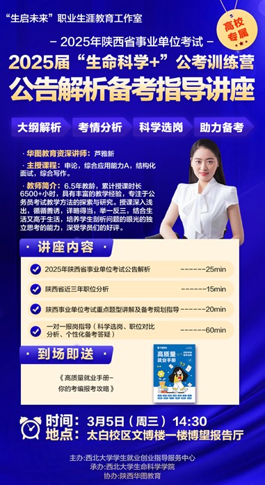 预告:2025届公考训练营第二期——陕西省事业单位考试公告解析备考指导讲座