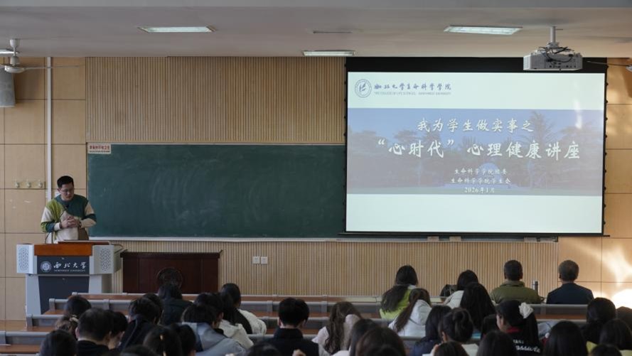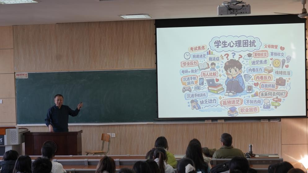 1月12日,于太白校区7307教室,学院邀请龚平原教授给本科生讲授了一场题为《“心时代”心理健康》的讲座,此次讲座由学院团委副书记范铭沁老师主持,学院吴少平教授以及100余名本科生共同参加。讲座围绕学习状态、自我认知、目标确立、心理调适等关键维度展开分享,为初入校园的学子们拨开迷雾,指引前行方向。