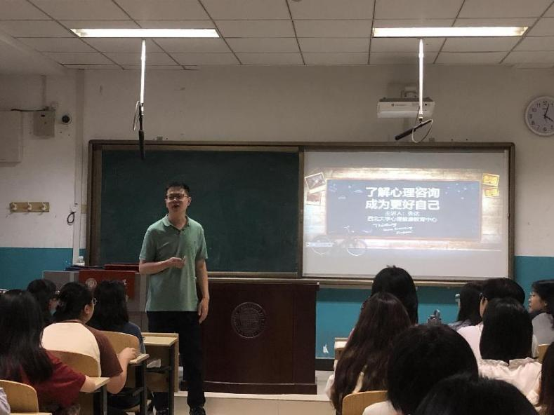 为加深同学们对心理咨询的了解,更好呵护心理健康,9月13日,学院邀请心理中心张达老师在北校区7107教室作“了解心理咨询,成为更好自己”主题讲座,学院辅导员刘凌飞老师及各年级心理委员参加讲座。