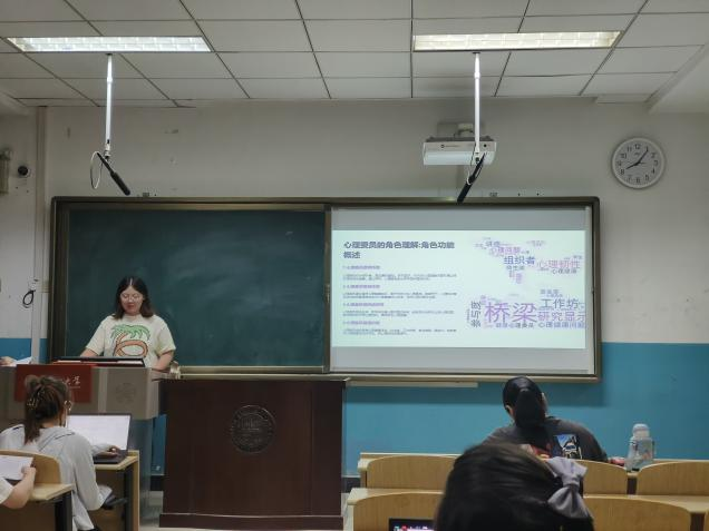 比赛伊始,选手述职报告 5分钟,并用ppt向大家讲述了任职心理骨干期间的职责义务、工作重点、帮扶故事、举办活动及助人成就。