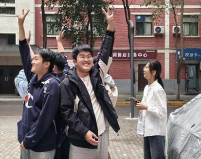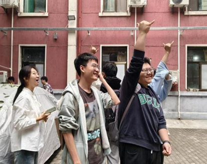 在同学们的欢呼声中,比赛进入最后环节“默契大挑战”。全体宿舍成员背对背站成一圈,按照自己的第一反应回答工作人员提问,考验彼此初印象。现场比拼紧张而激烈,大家在欢声笑语中拿出了全力以赴、誓夺桂冠的团队气势。