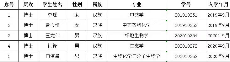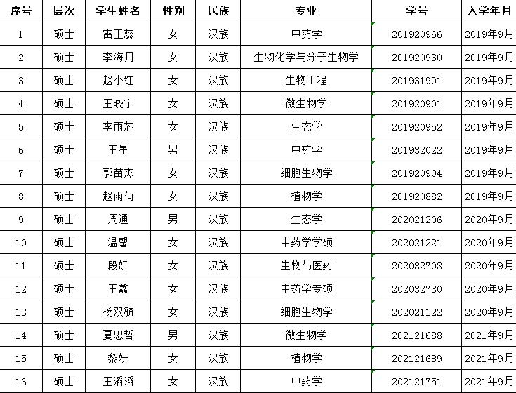 经个人申请、班级(专业)推荐、学院审核,拟推荐以下学生为2020-2021 学年研究生国家奖学金候选人: