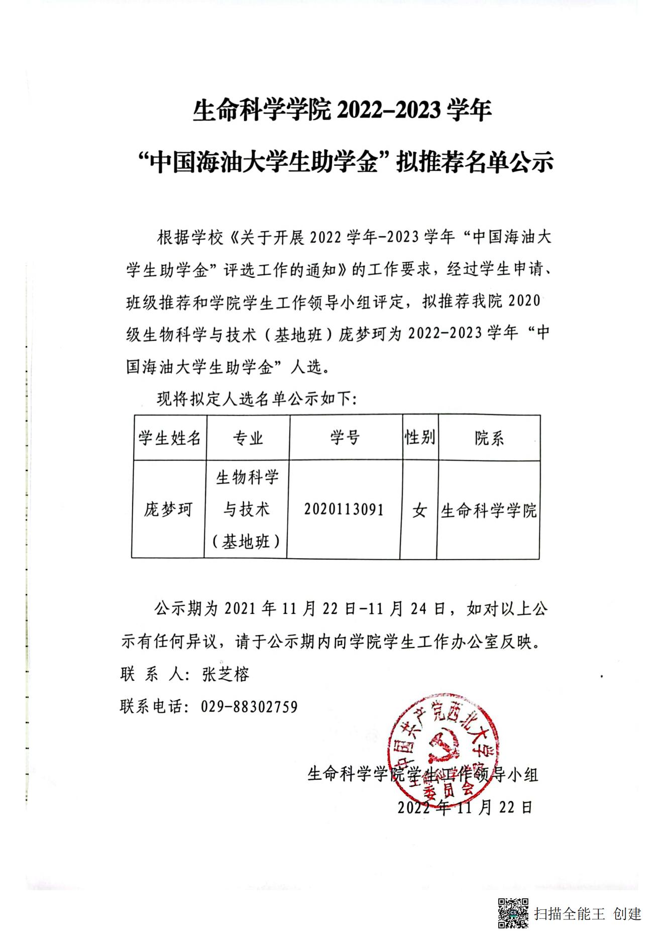 yl9193永利集团2022-2023学年“中国海油大学生助学金”拟推荐名单公示