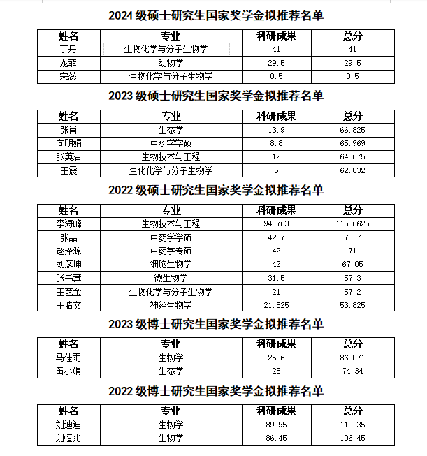 经学生申请、公开答辩、学院研究生奖学金评审小组审核研究,现将2024年研究生国家奖学金拟推荐人选公示如下。