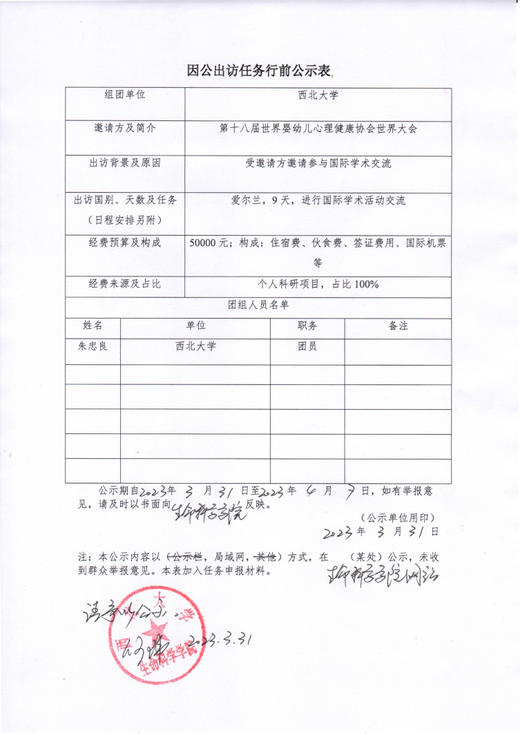 因公出访行前公示表