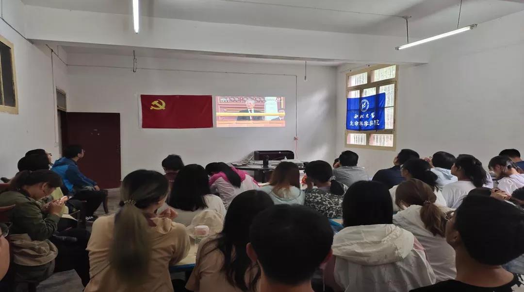 本次慰问恰逢中国共产党百年华诞,学院特设立旬阳坝分会场,组织在基地的全体师生党员集体观看了庆祝中国共产党成立100周年大会。