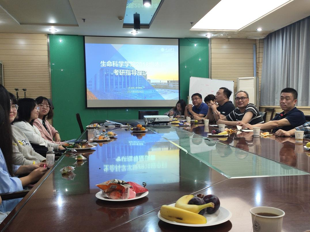 9月24日下午,我院于科研楼12层组织召开2018级本科考研指导座谈会,学院党委负责人张宇、党委副书记魏宁、各系主任、2018级班主任负责人付爱根院长、各专业班主任、研究生秘书马小伟、辅导员郭佳惠参加座谈会,2018级40余名考研同学踊跃到场。座谈会由魏宁主持。