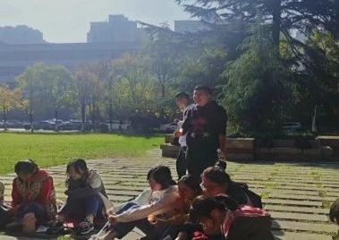 生物科学一班全体同学在班主任谭江丽老师、副班主任刘培亮老师和“壮苗计划”兼职辅导员薛孟一老师的带领下,于大礼堂草坪前举办班会。