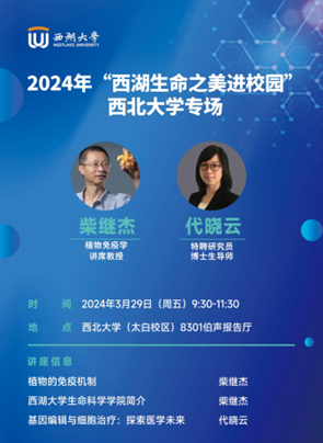 为进一步拓宽学术视野,激发同学们对生命科学研究的兴趣和热情。3月29日,“西湖生命之美进校园”永利集团专场讲座在太白校区8301伯声报告厅顺利举行。此次讲座特邀西湖大学yl9193永利集团的柴继杰教授和西湖大学基因编辑中心的代晓云研究员作为主讲嘉宾,为广大学子们带来一场学术盛宴。