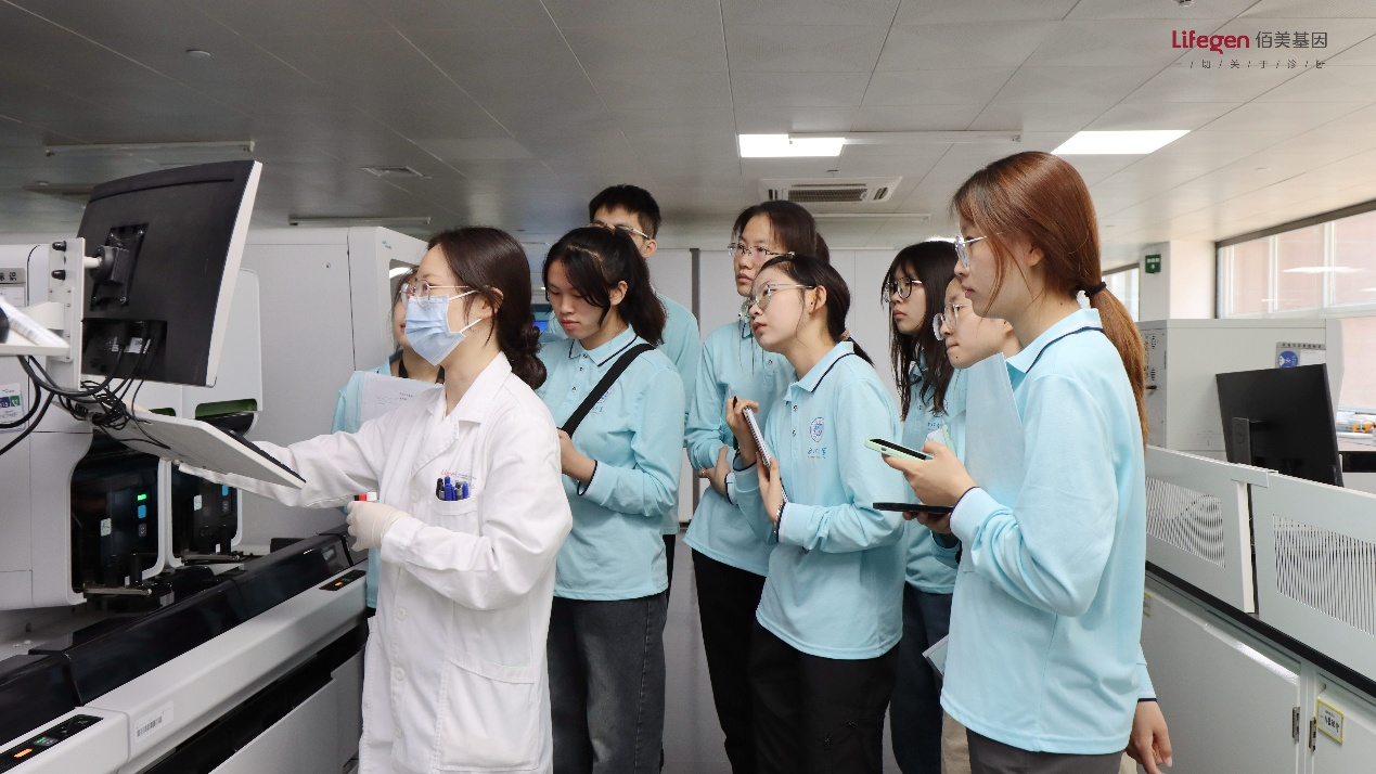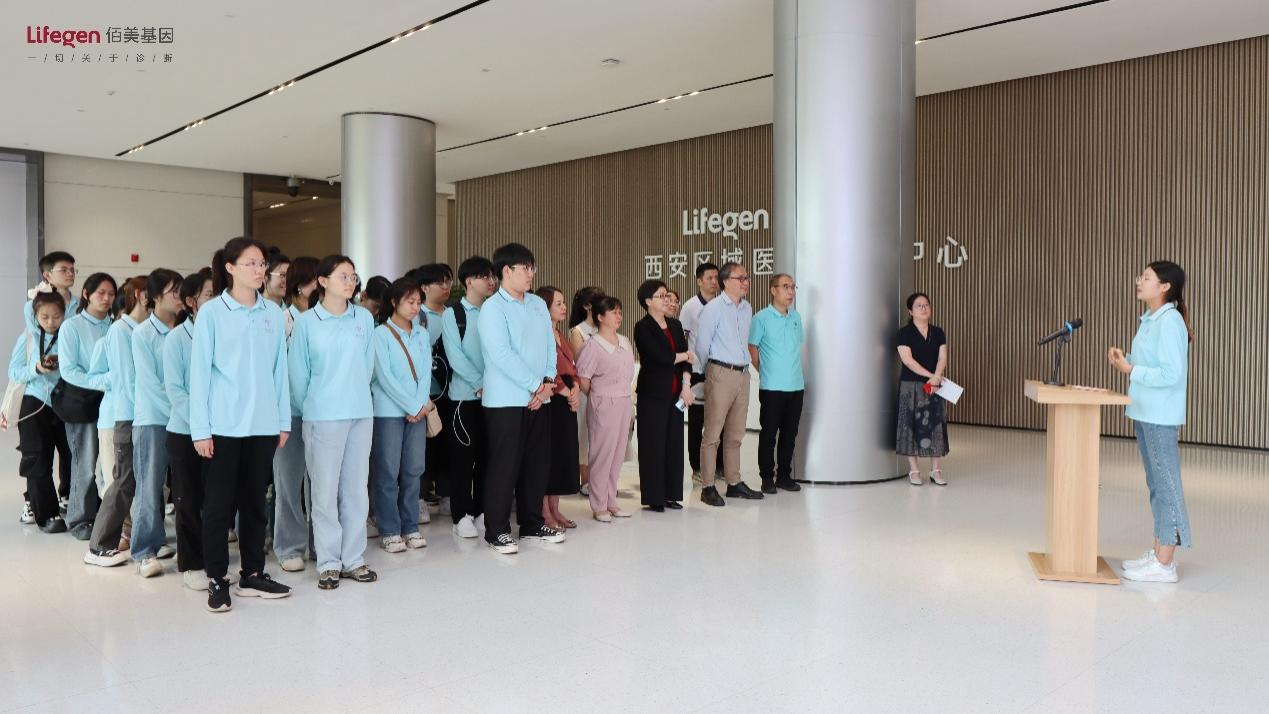 最后,同学们前往陕西佰美基因有限公司学习。佰美基因股份有限公司是一家专注于精准医疗技术的开发和应用转化的国家级高新技术企业,是全国三大基因检测工程技术中心之一 。
