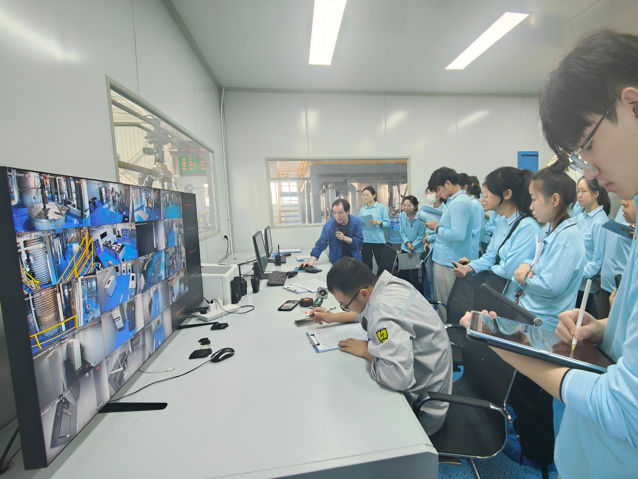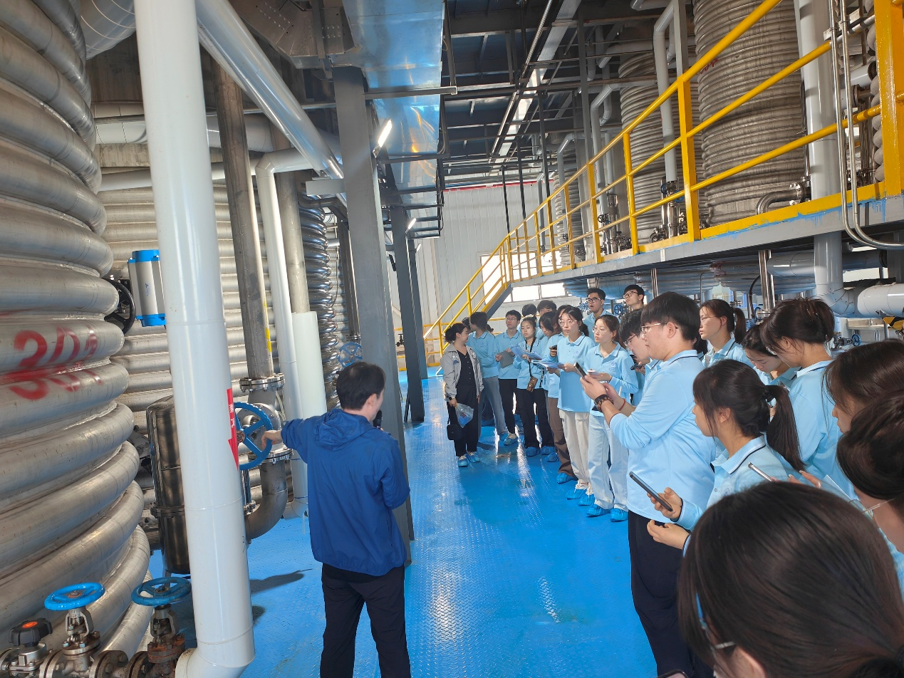 同学们驻守海斯夫生产车间第一线,深入参观和学习了DHA发酵和植物甾醇的生产过程,包括发酵种子制备、中试、发酵生产、产物提取以及副产物的加工处理。学习过程中,同学们虚心向老师请教,积极参与了发酵种子菌株的制备过程,以及生物技术产品发酵生产的关键技术和流程,理解了实验室研究与工业生产之间的联系。
