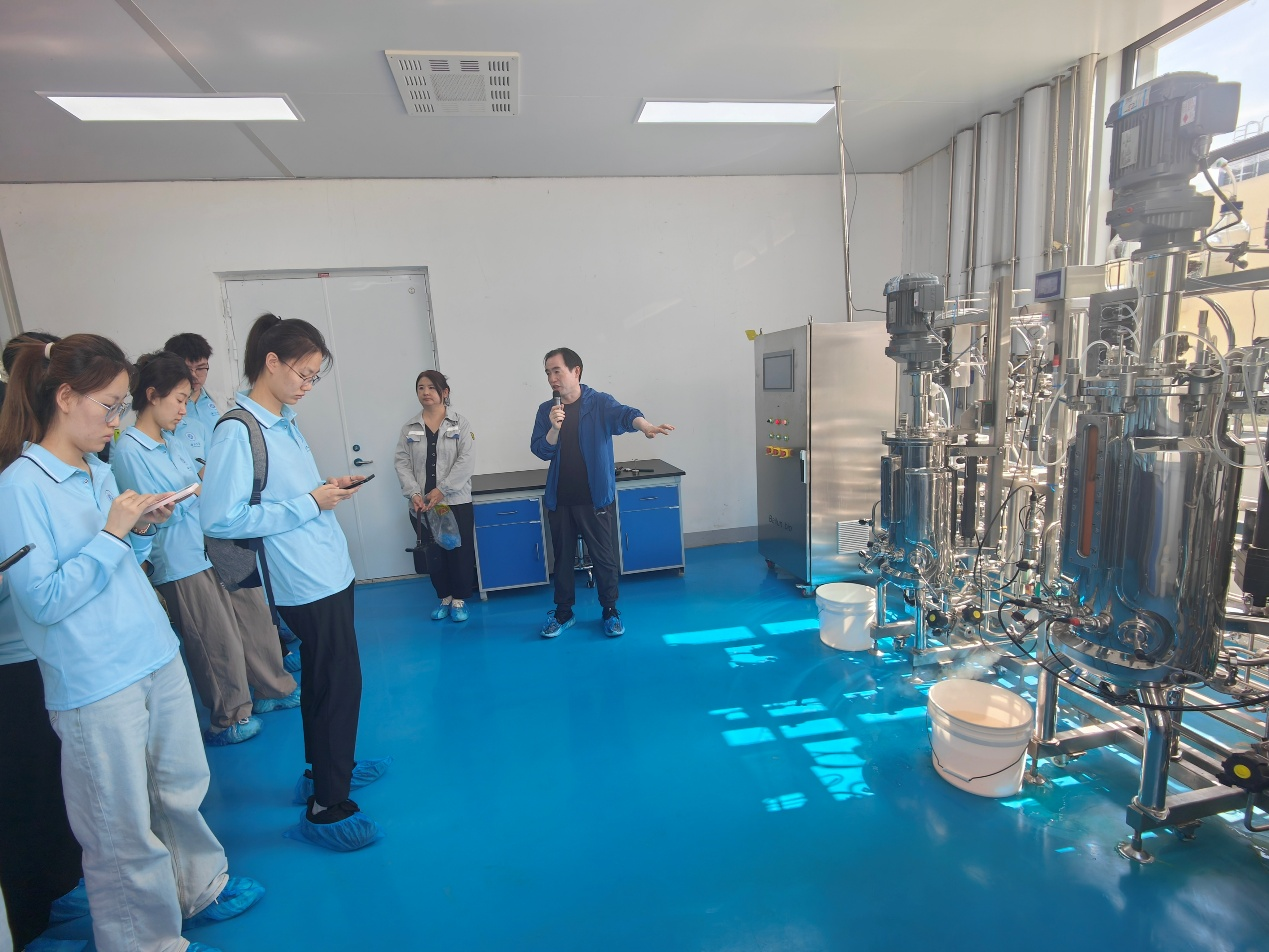 随后,同学们赴杨凌陕西海斯夫生物工程有限公司学习。海斯夫是一家以研发和创新为立足之本的高科技生物技术企业,集成和优化了油脂酯化和分子蒸馏技术、高效分离技术、功能因子微胶囊技术和定向微生物发酵技术,为推动生物科技发展做出了积极贡献。