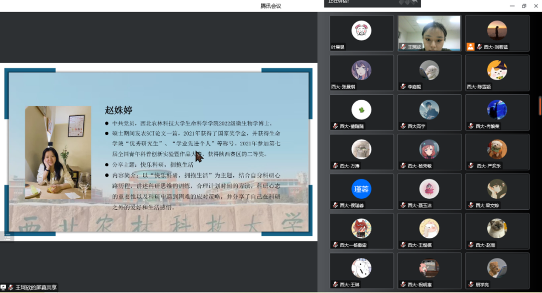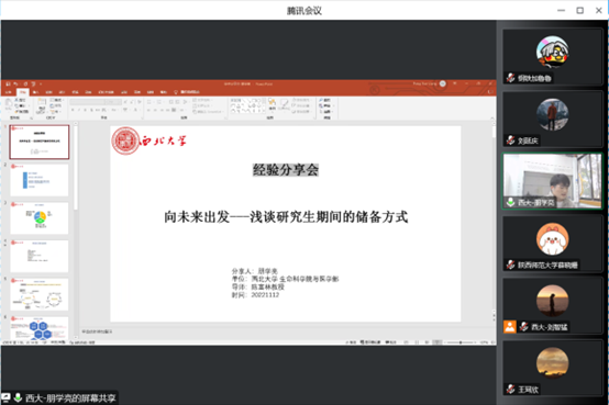 为进一步激发我院研究生的科研热情,培养研究生新生科研思维,促进各院校之间沟通与交流,2022年11月12日上午,我院联合西北工业大学、西北农林科技大学、西安电子科技大学、陕西师范大学等四所兄弟高校举办“学习取真经,交流换真知”科研经验学习会,我院研究生线上参会。