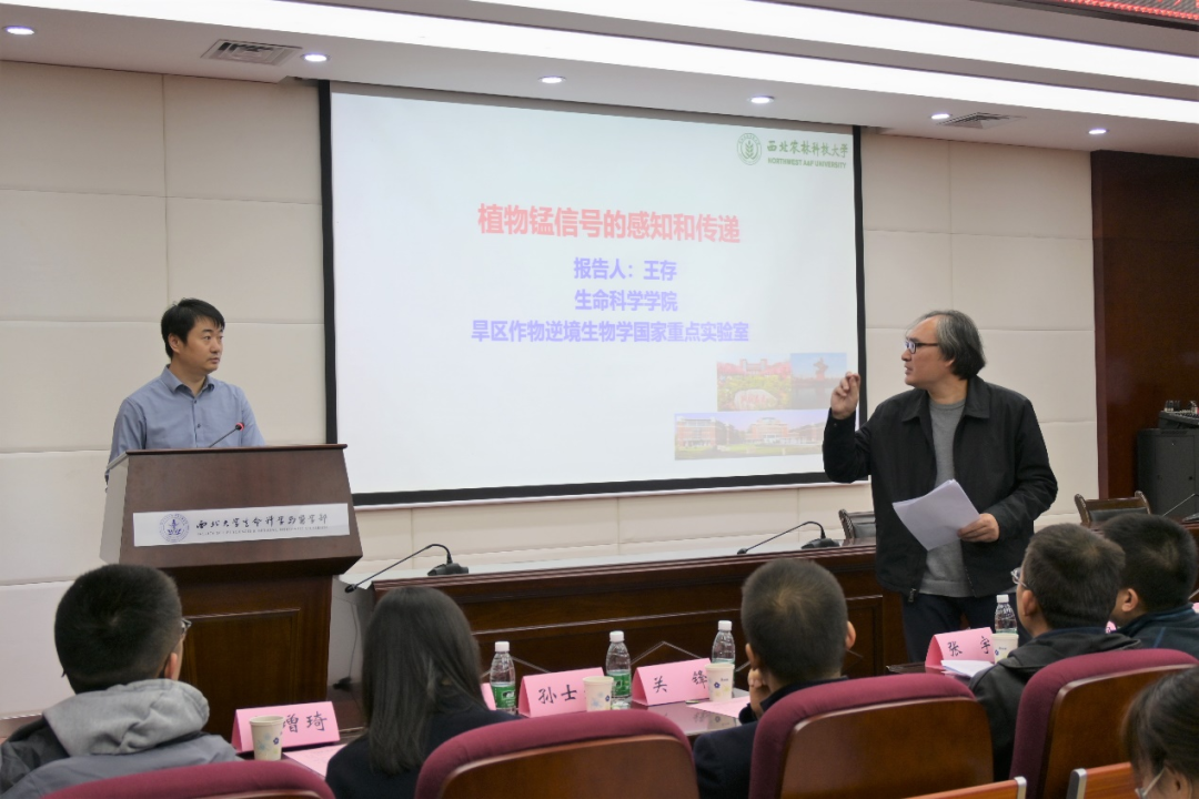 王存教授以与精神关系最密切的金属微量元素——锰元素为切入点重点解释了植物如何感知、解码和传递外界环境中锰浓度变化这一科学问题,介绍了Ca2+信号拮抗调控植物锰稳态的分子机制;侯鹏教授重点介绍了与甲状腺癌发生密切相关的TERT基因以及甲状腺癌病靶向治疗目前最新进展和前景。孙士生教授在报告中分析了“为什么糖基化研究相对较少”与“N-糖基化分析难在哪里”的原因,并总结了糖蛋白质组学新方法及在生物医学领域的应用。田静教授讲述了多种人类罕见病发生的分子机制以及研究过程中克服重重难题的方法以启示、激励大家。谭增琦副教授以外泌体的定义、形成、摄入与功能为出发点,阐释了平分型GlcNAc修饰的外泌体与肿瘤发生发展的关系。在场师生与报告老师进行精彩互动,报告老师针对问题一一进行了解答。