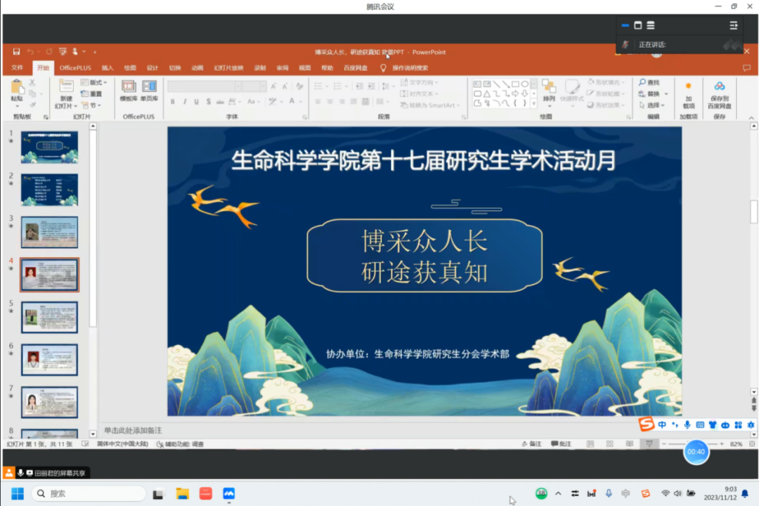 为进一步激发我院研究生科研热情、培养科研思维、提升科研能力、拓展合作渠道,促进各个院校之间友好交流和沟通,11月12日上午,我院联合西北工业大学、西北农林科技大学、西安电子科技大学、陕西师范大学、西安交通大学五所兄弟高校,举办“博采众人长,研途获真知”科研经验学习会,百余名研究生线上参会。