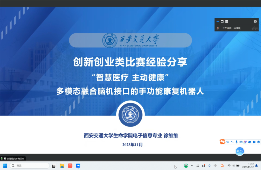 秦培岩从自身科研经历出发,结合科研过程中的实践经验,讲述学术搜索的一般思路与具体流程,分享比较常用的学术搜索引擎、学术资源网站等;丰晶晶就研究生就读期间的科研经历,分享了在科研道路上可能会遇到的共性问题及解决方法;葛婉仪从培养科研习惯的重要性、瓶颈突破的关键技巧及科研心态等方面进行交流分享;郭勇建通过对自身科研经历的剖析解读,总结并分享了常用的数据处理软件与数据分析方法,建议要养成持续读书的良好习惯;李茵总结了分析实验数据的技巧与前人经验,从实验分组、数据预处理、SPSS分析与GraphPad作图四个方面详细介绍数据处理过程中可能出现的问题及规避方法;徐维维以多模态融合脑机接口的手功能康复机器人项目为例,阐述了在创新创业类大赛中如何撰写优秀的商业计划书,从市场与商业模式角度给出了自己的宝贵经验;任玉林以自己所参与的核酸检测——“三合一”液滴数字PCR检测技术项目课题为依托,讲述了参与科创类竞赛的流程与各项重要事件节点,分享了项目计划书撰写、项目展示与答辩等方面的经验。