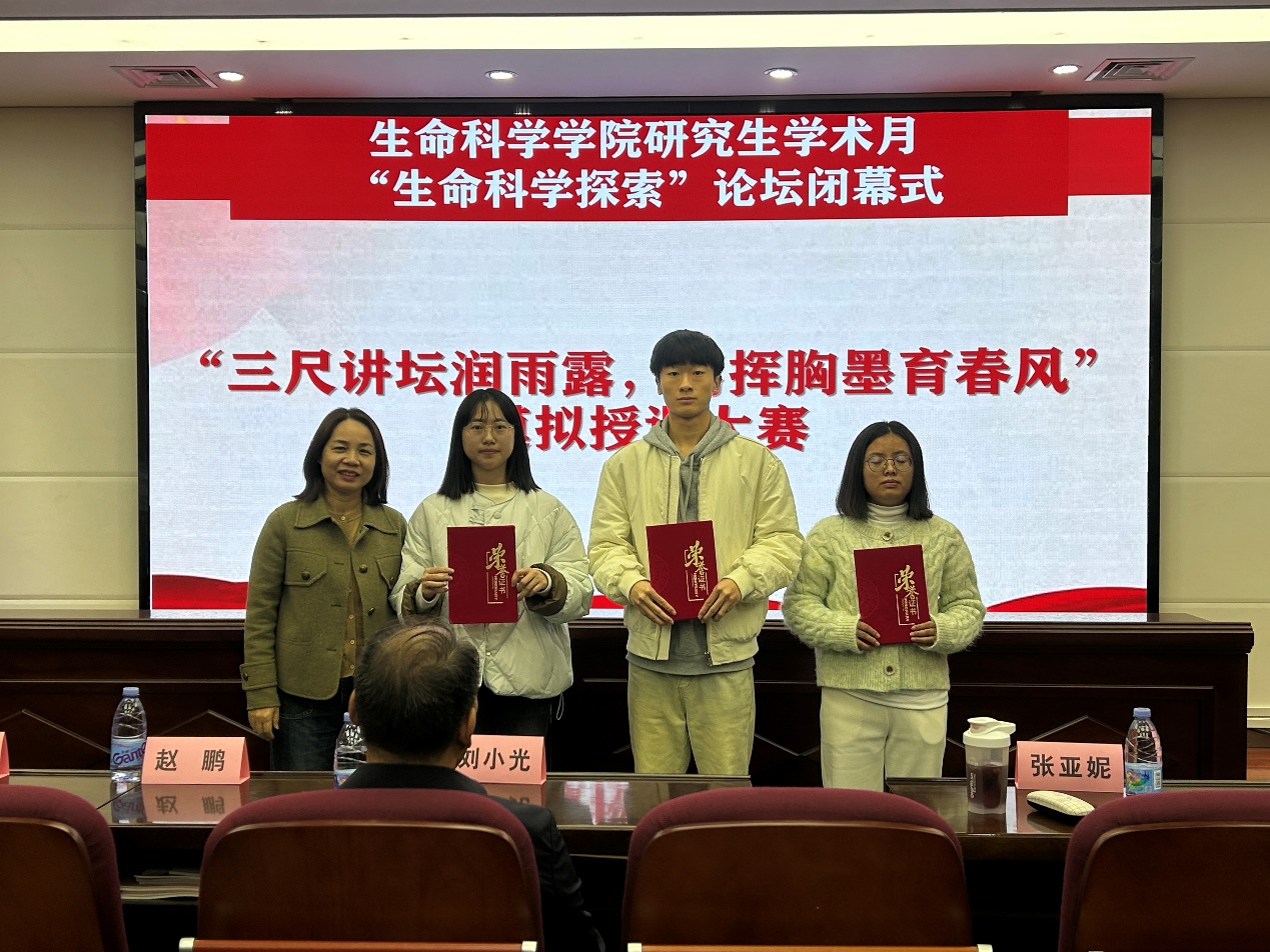 最后,付爱根教授对参加本次学术月的师生表达了感谢,并对学院今后学术活动发展提出了殷切期望。本次“生命科学探索”论坛不仅提供了一个展示学术成果、参与学术交流的平台,也展现了生科学子矢志科研、奋发向上的精神风貌。今后,学院将继续以研究生学术活动为契机,为研究生搭建多层次、多形式的学术交流平台,激发研究生学术创新活力,进一步提高学院研究生培养质量。
