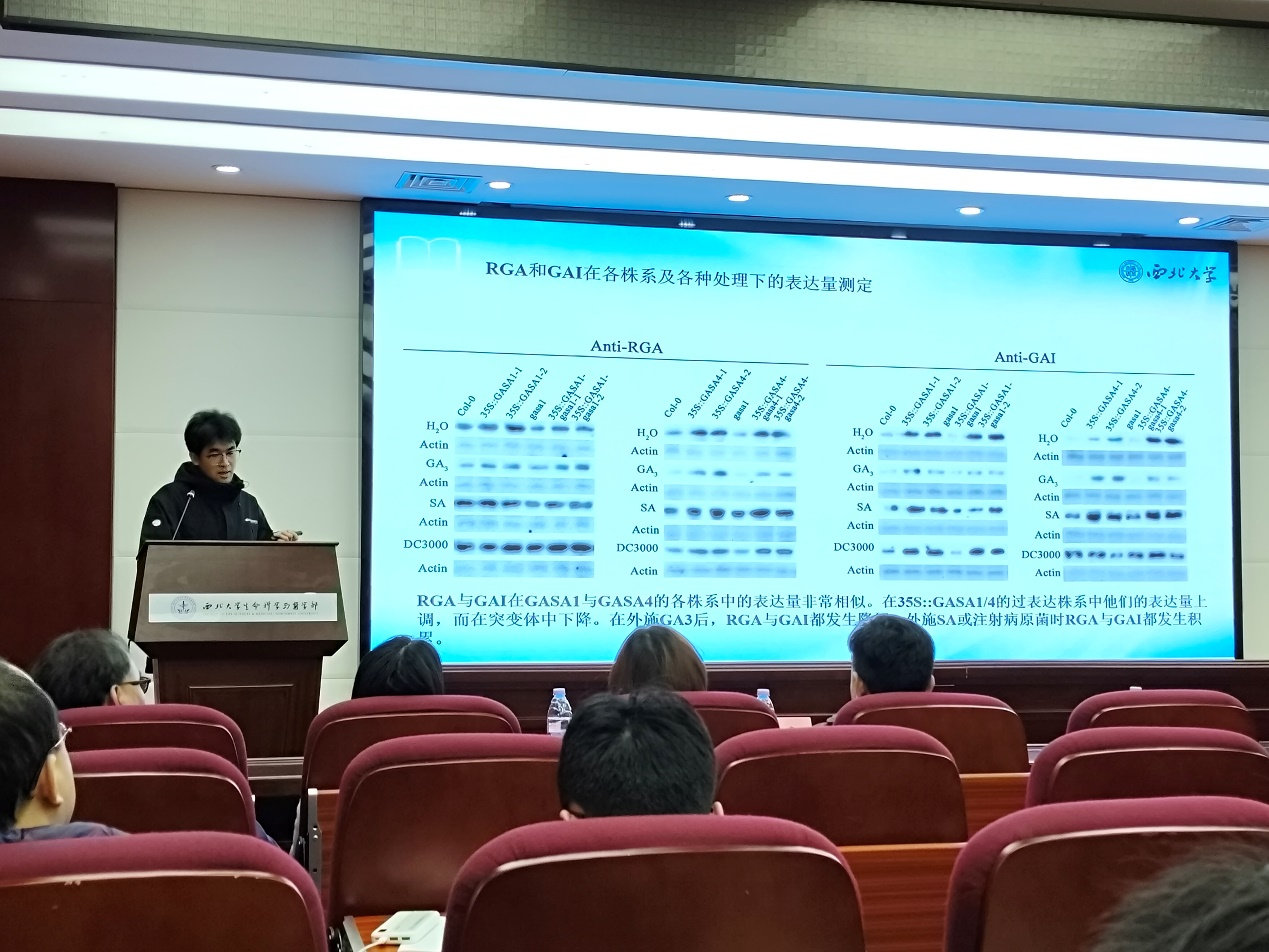紧接着,田一凡同学带来了题为“TNIK在脓毒症心肌损伤的作用及机制研究”的报告。最后,2022级博士宋建播以“拟南芥AtGASA1和AtGASA4在植物免疫过程中的抗性研究”为题,分享了他在植物学研究领域的最新成果。