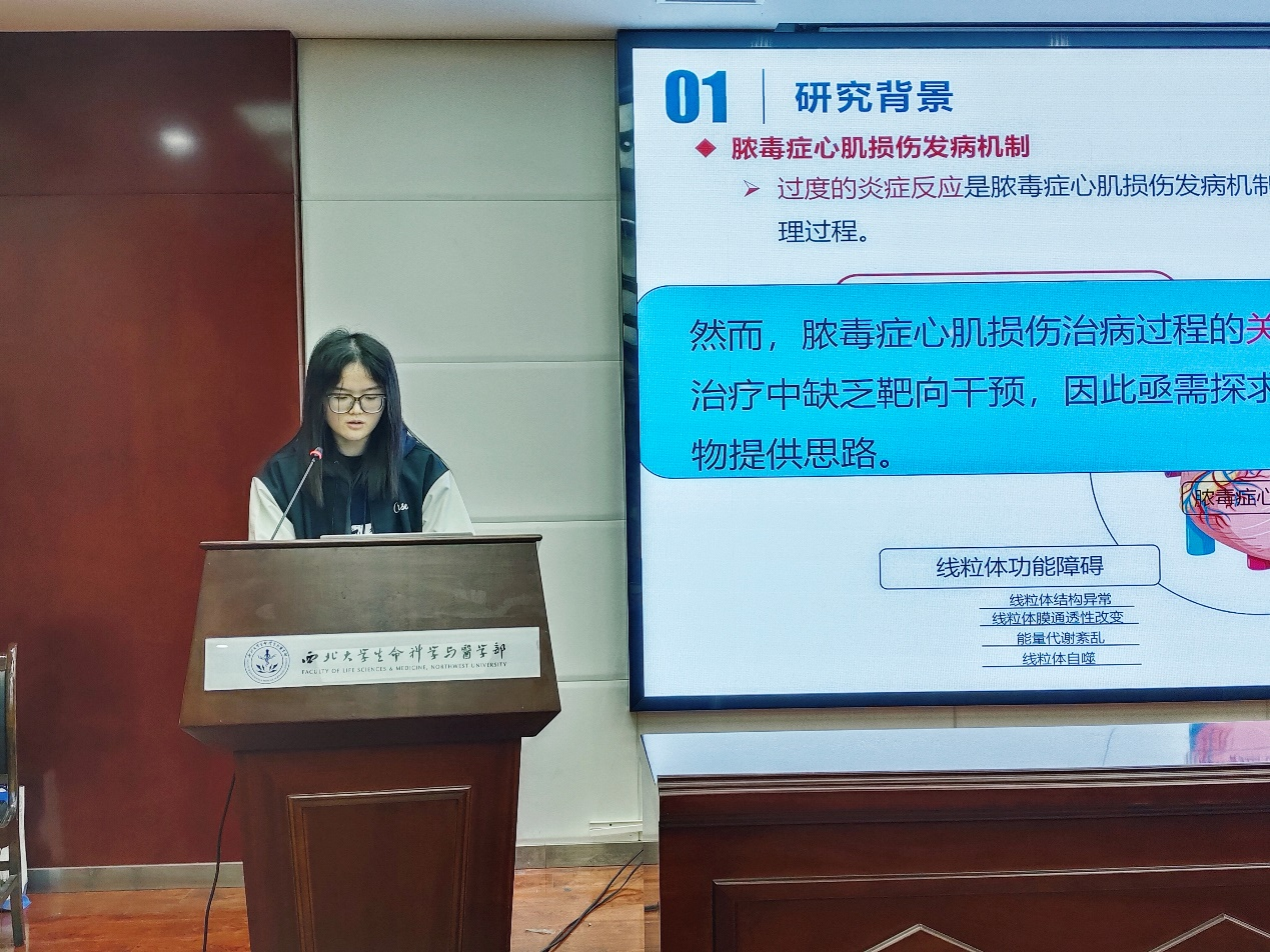 由各分会场获奖研究生代表进行学术汇报。22级硕士姚强、杨晓、田一凡,22级博士宋建播分别做了题为《Immunophilin CYN37 is involved in high light resistance by interacting with PsbR in Chlamydomonas》《衰老相关LncRNA的鉴定及功能机制探究》《TNIK在脓毒症心肌损伤的作用及机制研究》和《拟南芥AtGASA1和AtGASA4在植物免疫过程中的抗性研究》的学术汇报,分享了自己的研究成果。
