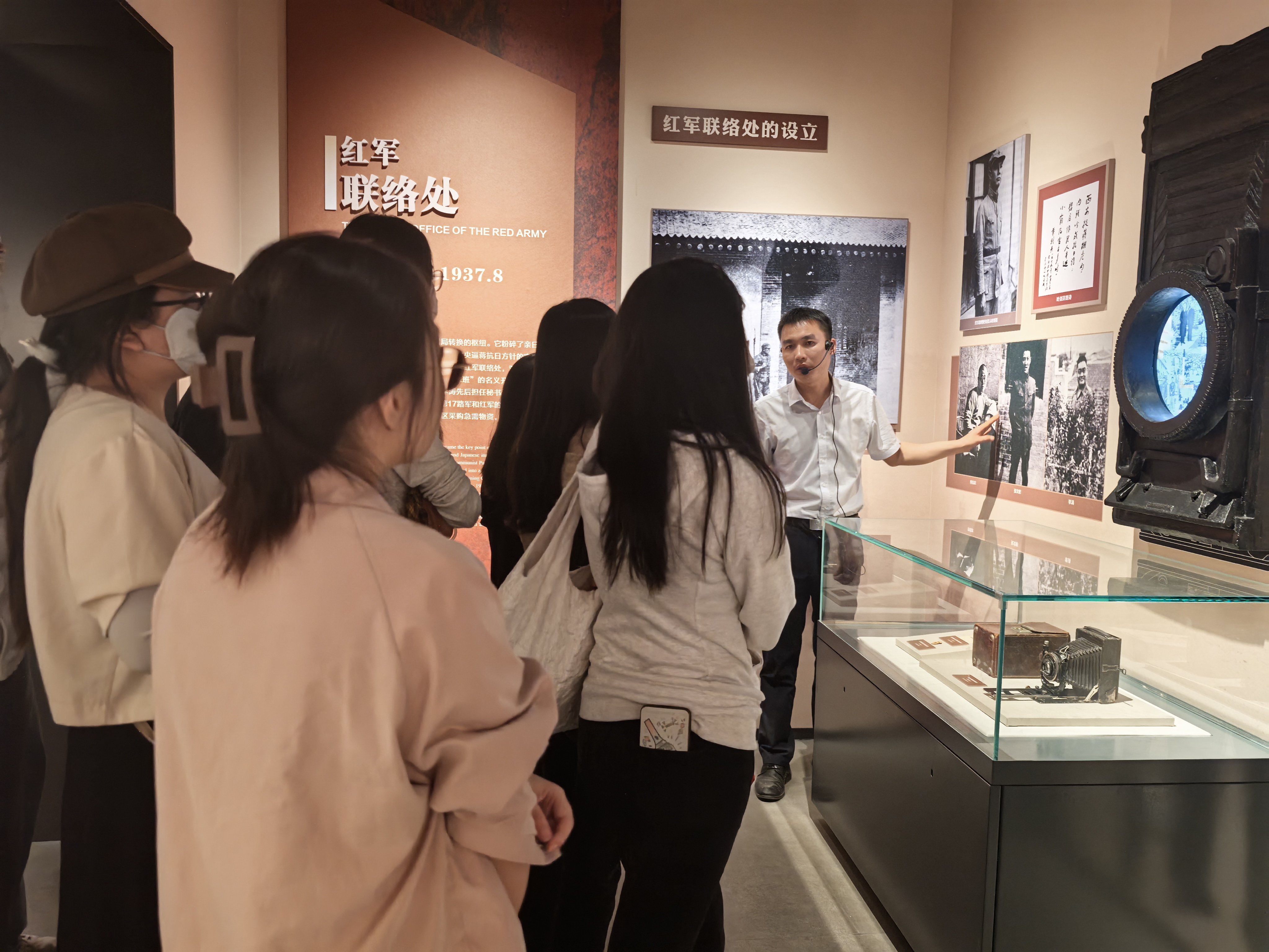 下午,同学们来到八路军西安办事处纪念馆。这处革命旧址曾以“德国牙医冯海伯诊所”为掩护,是周恩来与张学良密谈的地方。抗战全面爆发后,该地转型为国民革命军第八路军驻陕办事处,历经秘密交通站、红军联络处、八路军驻陕办事处三个时期,主要承担宣传抗日主张、统战工作、采集领取抗战物资及输送爱国青年和知识分子等到延安等任务,是抗战时期沟通延安与全国的“红色命脉”,为民族独立与解放作出重要贡献。