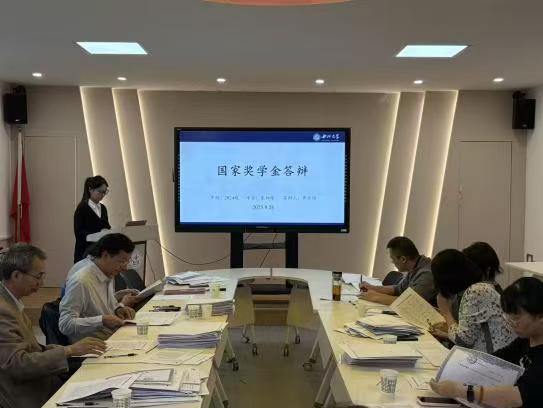 为做好研究生国家奖学金评选工作,进一步推进学院学风建设,充分发挥优秀学子的标杆作用,9月26日,学院在博雅会议室组织召开2025年研究生国家奖学金答辩会。研究生国家奖学金评审委员会成员担任答辩评委,答辩会由党委副书记陈露老师主持。
