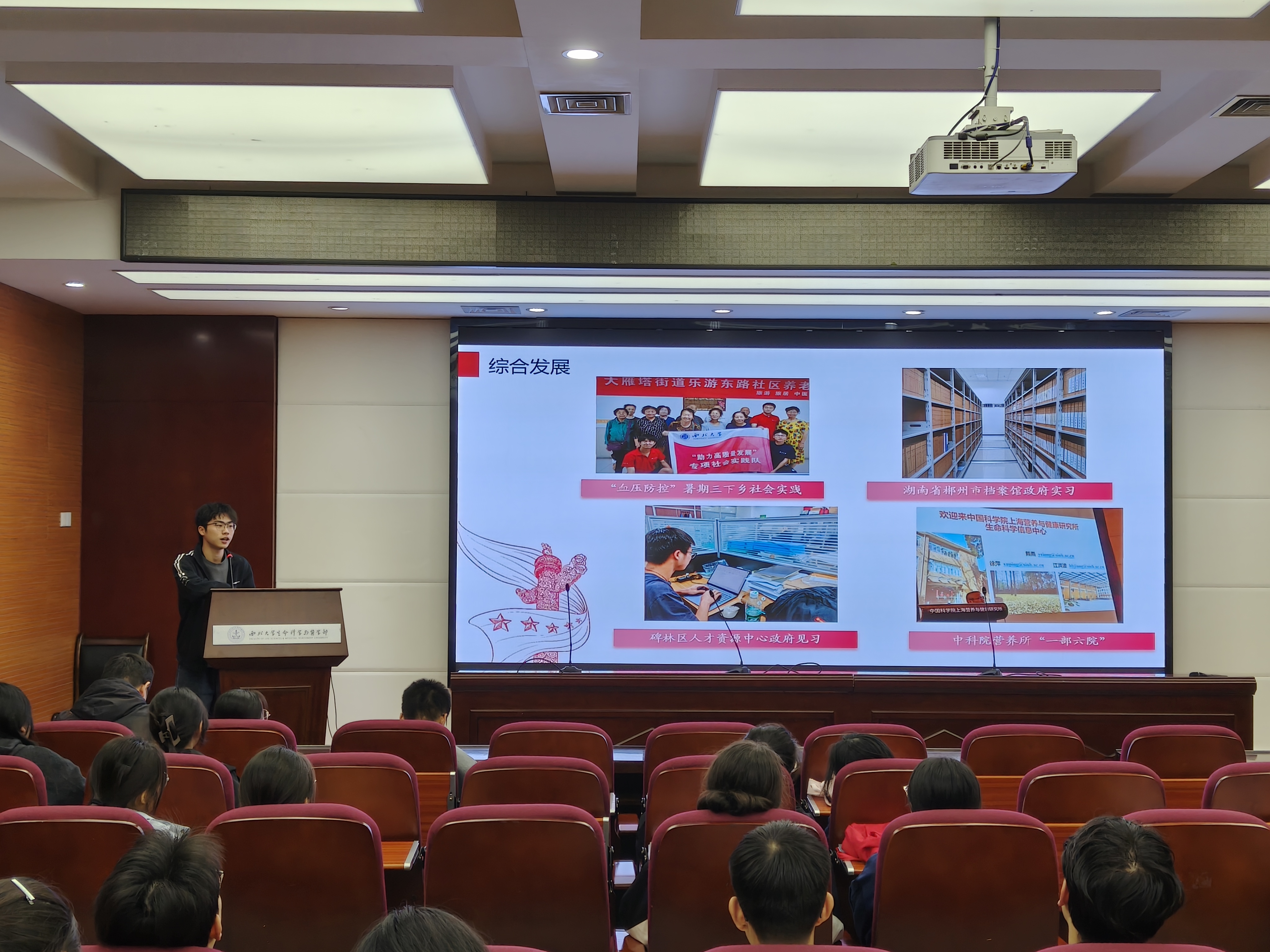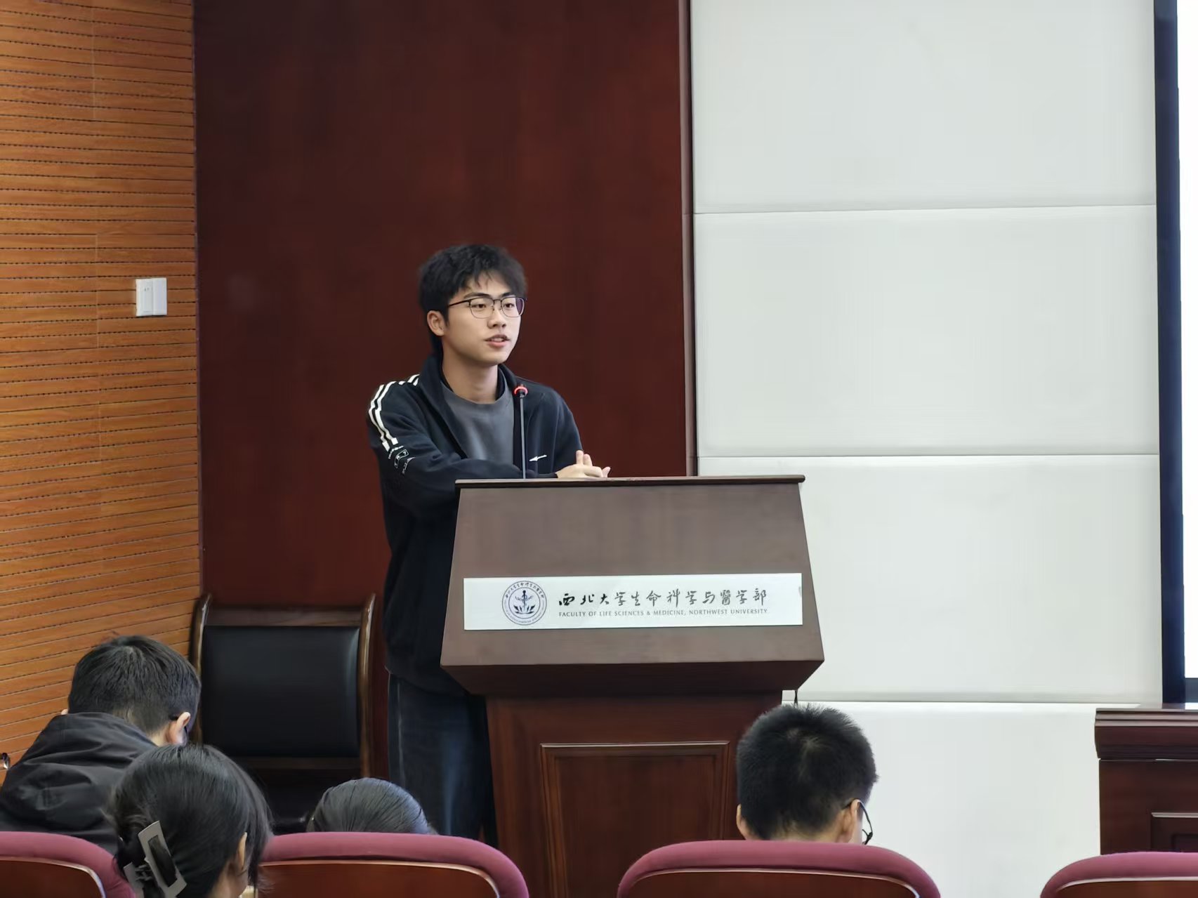 王轩同学聚焦大学生日常生活和心理建设,以自己的大学活动、社团经历为例,鼓励同学们充实自己,尝试多种学习方向与兴趣爱好。他坦言,大学生活中失败才是常态。面对失败与挫折,他鼓励同学们做好准备,迎难而上,以真诚和努力披荆斩棘。