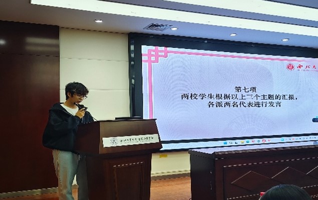 紧接着,西安交通大学宗濂书院学生会主席团成员王斌围绕宗濂书院的培养理念、学术氛围与特色活动展开分享,进一步增进了两院之间的相互了解与认同。