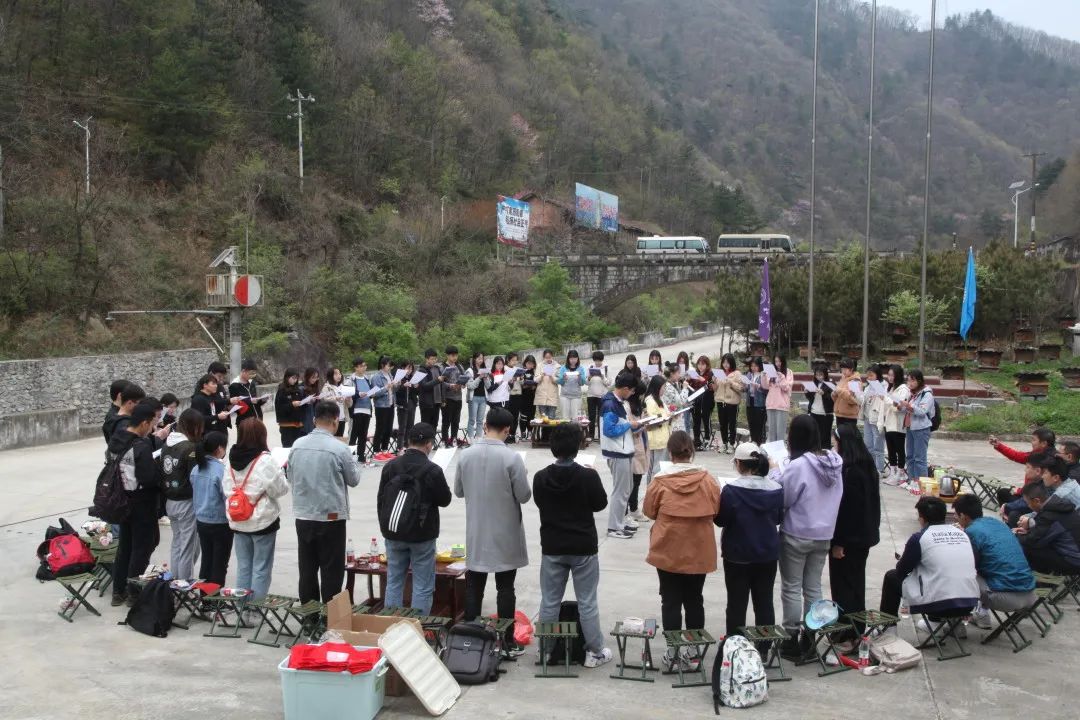 在植树活动前,同学们参观了陕西省龙草坪林业局观音山自然学校,并和老师们举行了别开生面的午餐会,围绕专业学习、爱校荣校、生态保护、实践实习等话题进行深入地交流。春意盎然中,同学们演唱了《我和我的祖国》,表达对祖国的热爱,诗朗诵《大秦岭礼赞》表达对巍峨秦岭的敬畏和生态保护的决心。
